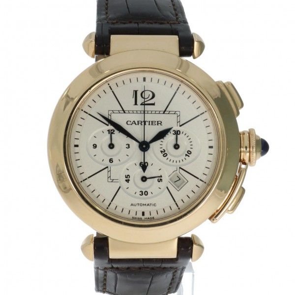 Cartier Pasha 42 2861 W3020151. Bonito cronógrafo Cartier Pasha em ouro amarelo de 18k, caixa de 42 mm, movimento automático Correia de pele castanha escura, fecho dobrável dourado Caixa genérica e um certificado com 12 meses de garantia da nossa loja
