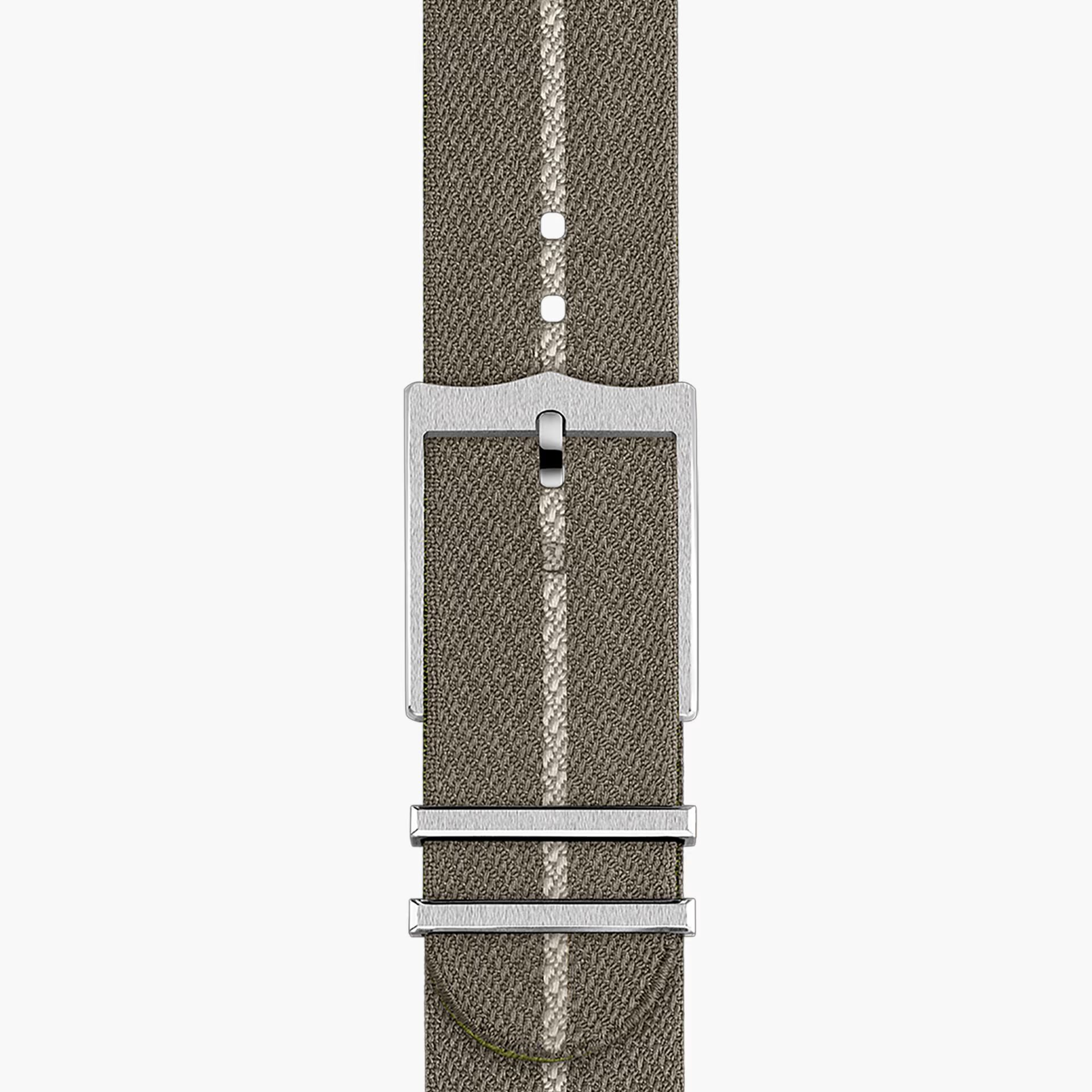 Lunette: Unidirectionele bezel van 925 zilver met een 60-minuten gegradueerde schijf van mattaupe geanodiseerd aluminium en verzilverde markeringen en cijfers