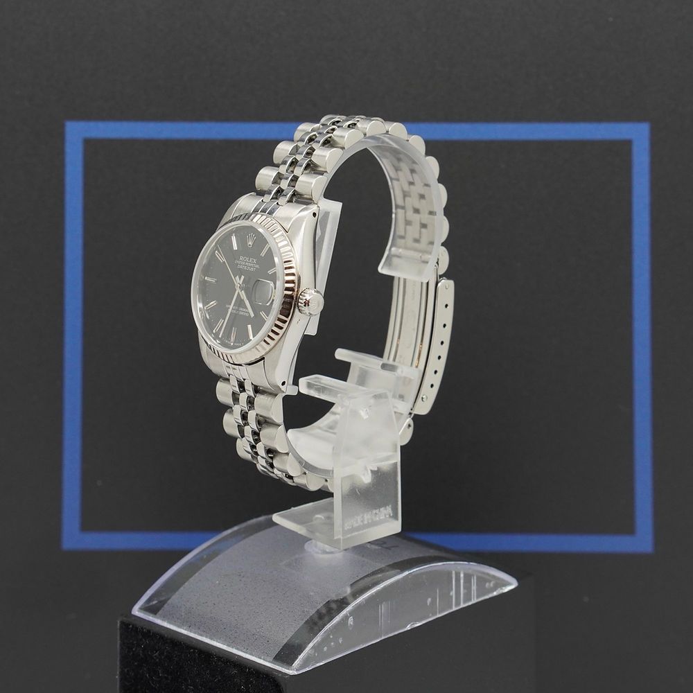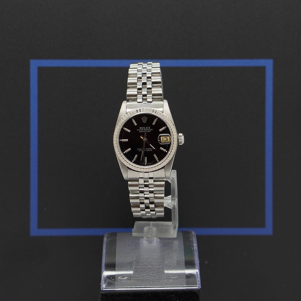 Rolex Datejust 31 Ref: 68274 | from 1986 | Rolex box. DATA OF THE WATCH: Internal ID: 177 Manufacturer: Rolex Model: Oyster Perpetual Datejust 31 Reference: 68274 Scope of delivery: Rolex box Diameter of the case: 31mm Width of the bracelet: 17mm Bracelet: solid Rolex Jubilee bracelet Material of the watch: stainless steel Winding: automatic movement Dial: black Lugs: not solid Glass: sapphire crystal CONDITION OF THE WATCH AND WORK CARRIED OUT * The watch is in satisfactory condition (dial has noticeable marks) * Watch has been checked for authenticity * Movement has been checked for accuracy GENERAL INFORMATION: *FREE EXPRESS SHIPPING WITHIN EUROPE* Images: The images shown are not stock images! We photograph each watch model as accurately as possible. Since stains and shadows sometimes cannot be avoided, please call us or write us a message if a picture is not entirely clear to you. Warranty: void if the watch is opened by another watchmaker Water resistance: no permanent property; Annual inspection recommended The goods offered are subject to differential taxation according to §25a