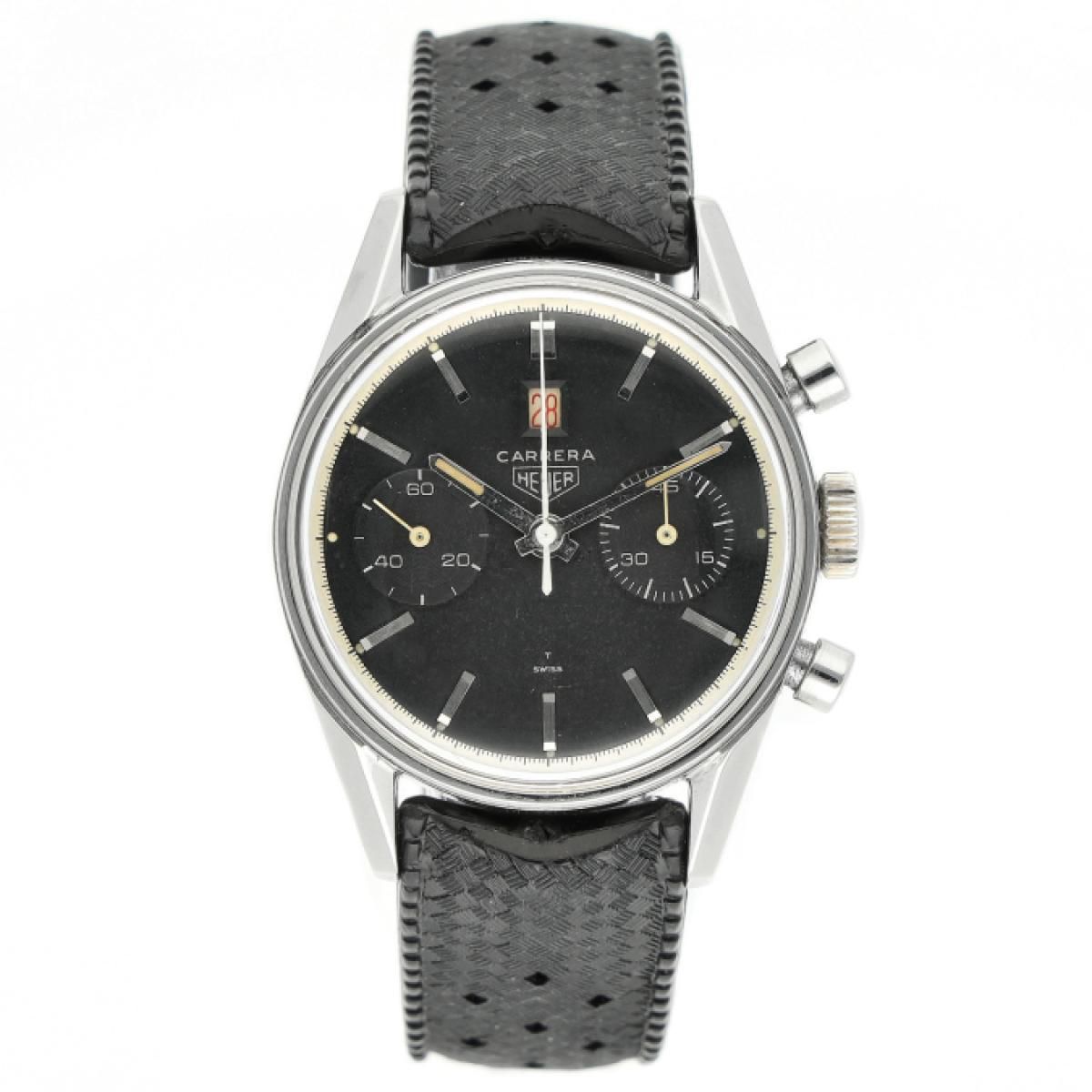HEUER Carrera from 1966 with a 36mm stainless steel case and pin buckle. The men's HEUER watch is in good condition.Good conditionRef. 3147N36mmDateAutomaticChronograph
