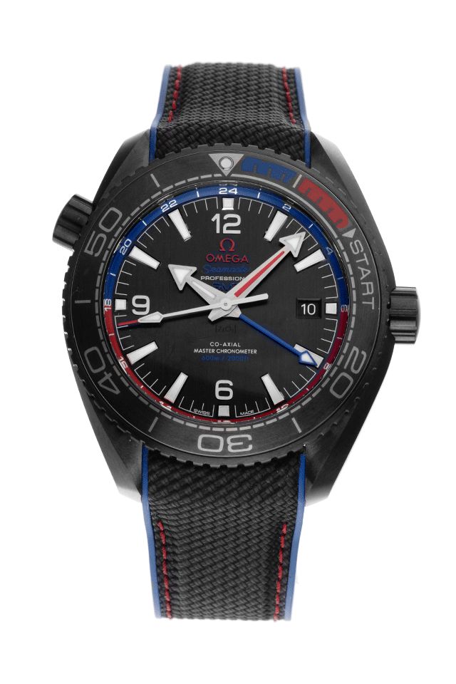 Omega Seamaster Planet Ocean 600M Co-Axial Master Chronometer GMT Keramik Automatik Armband Kautschuk