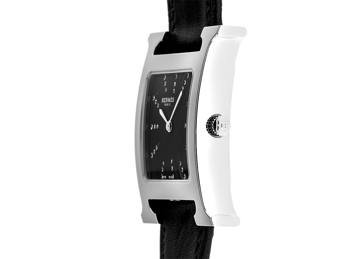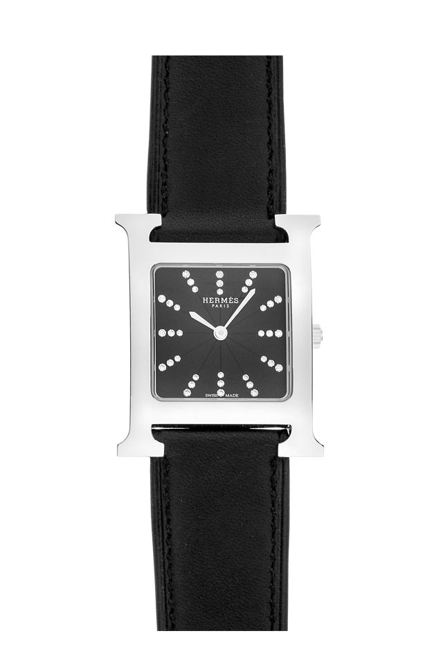 Hermes Heure H Stahl Diamanten Quarz Armband Leder