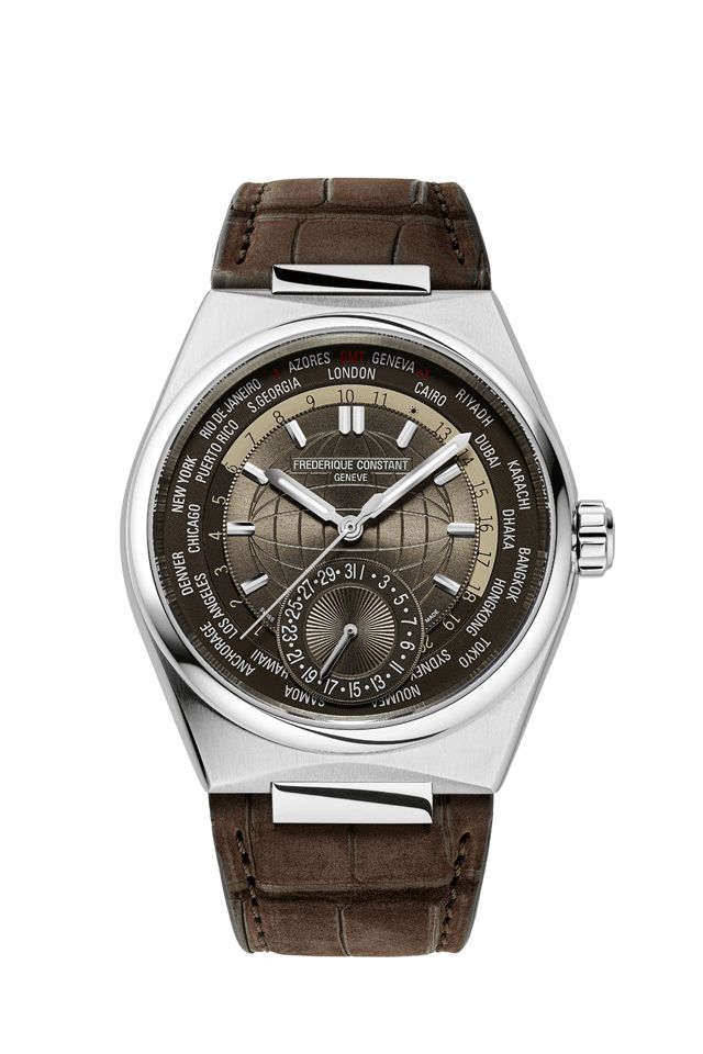 Frederique Constant Highlife Worldtimer Stahl Automatik Armband Krokoleder Faltschließe