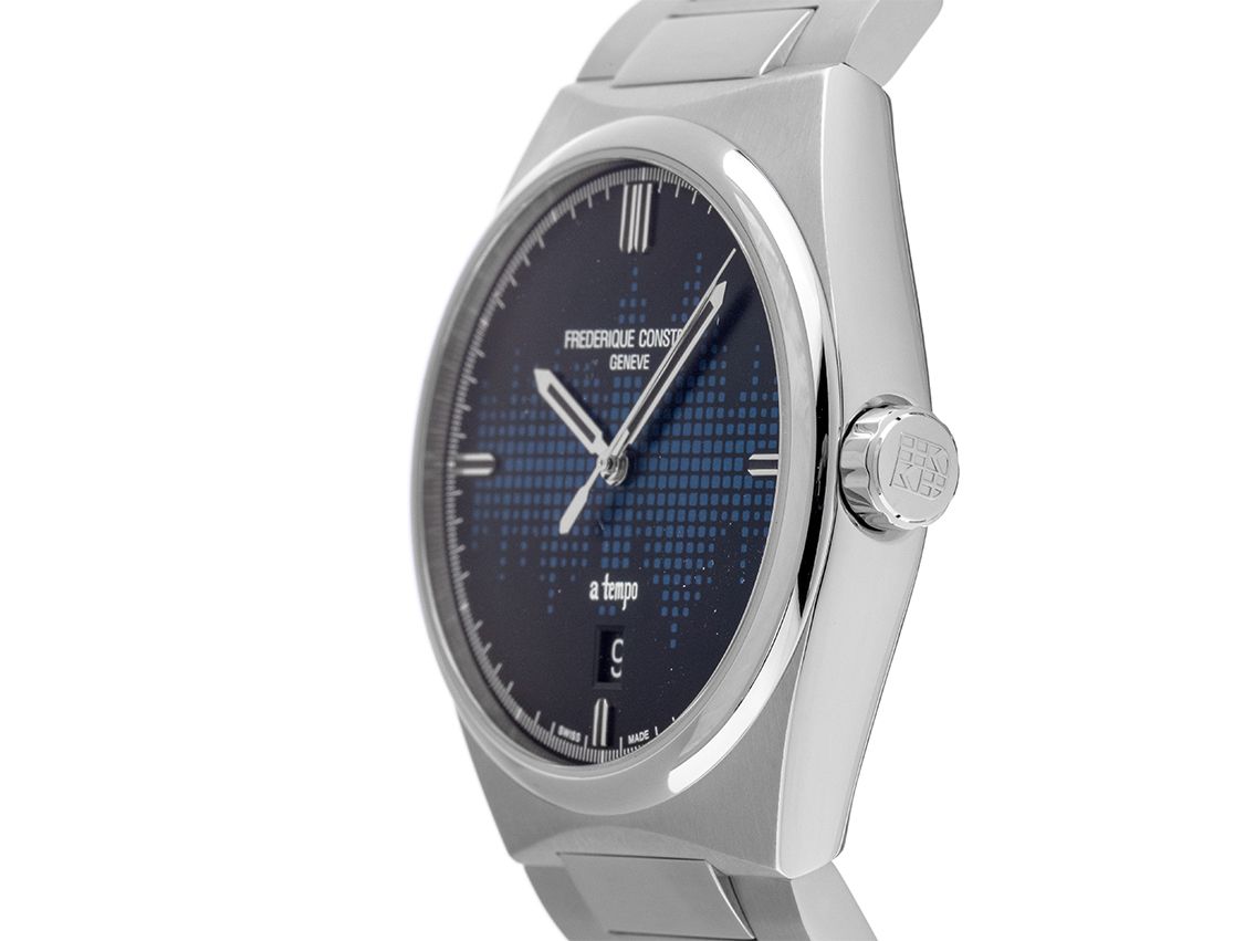 Frederique Constant Highlife Automatic Stahl Automatik Chronometer Armband Stahl LimitiertGehäuse Edelstahl poliert und satiniert, Gehäusedurchmesser ohne Krone 39mm, Gehäusehöhe 10,3mm. Lünette Edelstahl glatt und poliert. Armband Edelstahl poliert und satiniert, verdeckte Doppelsicherheitsfaltschließe Edelstahl mit Hersteller-Logo. Zifferblatt matt schwarz mit Schallwellenmuster, aufgesetzten Edelstahl Leuchtindexen und Edelstahl Leuchtzeigern. Uhrwerk Automatik, Frederique Constant Manufakturkaliber FC-303 mit 26 Edelsteinen, Gangreserve ca. 38 Stunden, 28.800A/h. Anzeige von Stunde, Minute und Sekunde über Zeiger aus der Mitte mit Sekundenstopp zur sekundengenauen Einstellung der Uhrzeit, Datumsanzeige mit Schnellverstellung unter Glaslupe bei 6 Uhr. Saphirglas kratzfest und gewölbt. Krone mit Hersteller-Logo. Boden Edelstahl 4-fach verschraubt und graviert mit Saphirglas Sichtfenster. Gewicht der Uhr inklusive Armband 147g, Länge des Armbandes inklusive Gehäuse 205mm. Wasserdicht bis 10 ATM. Referenznummer: FC-303TA3NH6B, Gehäusenummer: 4034XXX, ID: ST254619961223H-1995, Artikelnummer: 10000072744. Original Frederique Constant Box mit Umkarton und Garantie Papiere sowie Beschreibung und Wechsel-Armband Kautschuk, Full Set. Neuheit. Limitiert auf 432 Exemplare. Neu. Lieferzeit sofort.
