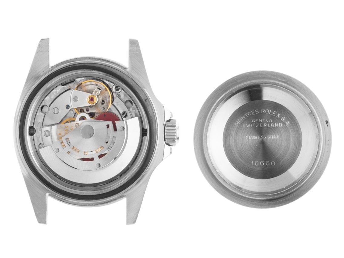 Caixa em aço polido e acetinado, diâmetro da caixa sem coroa 40mm, altura da caixa 15,2mm. Bezel em aço com inserto preto e escala de 60 minutos, unidirecional. Válvula de hélio às 9 horas. Pulseira Oyster em aço polido e acetinado, fecho de segurança dobrável em aço com logotipo do fabricante. Mostrador "Bicchierini" preto com índices em ouro branco aplicados e ponteiros em ouro branco com bonita patina. Movimento automático, cronômetro com certificado, calibre de manufatura Rolex 3135 com 31 rubis. Exibição de horas, minutos e segundos através de ponteiros centrais com parada de segundos para ajuste preciso da hora, exibição de data com ajuste rápido às 3 horas, 6/9 aberto (6 e 9 abertas na exibição de data). Vidro de safira resistente a riscos. Coroa rosqueada com proteção lateral e logotipo do fabricante. Fundo em aço rosqueado e gravado. Peso do relógio incluindo a pulseira 147g, comprimento da pulseira incluindo a caixa 175mm. Número de referência: 16660, número da caixa: 8237XXX, ID: KA1107299640324H-20900, número do artigo: 10000073883. Com controle de marcha e limpeza de abril de 2024, incluindo 1000 dias de garantia! Caixa original da Rolex com embalagem e documentos de garantia de 12/1984, além de descrição, manual de tradução, estojo de couro, dia e selo de cronômetro Rolex, LC 150 / Espanha UE, incluindo livro original da Mondani, Full Set. Investimento com potencial de valorização, peça de colecionador extremamente rara, de primeira mão. Estado original e não polido. Prazo de entrega imediato.