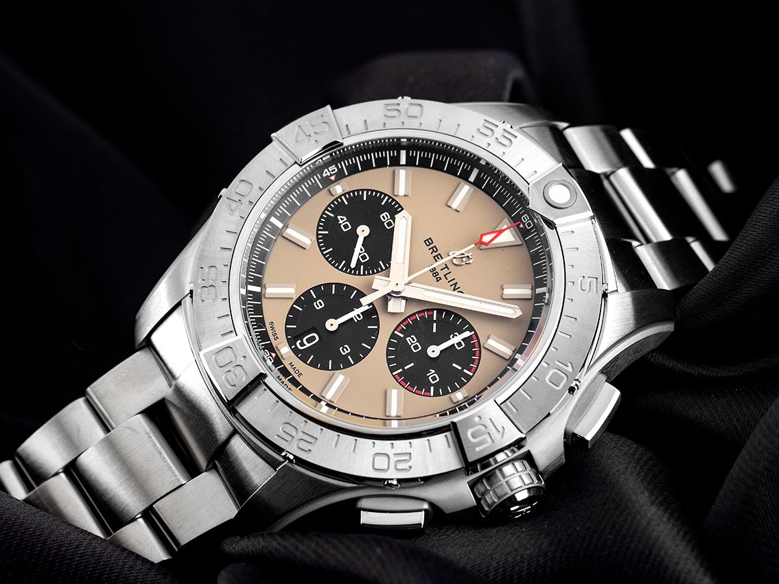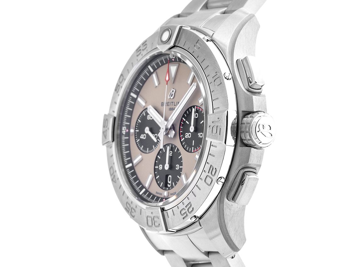 Breitling Avenger B01Chrongraph Stahl Automatik Armband StahlGehäuse Edelstahl satiniert, Gehäusedurchmesser ohne Krone 44mm, Gehäusehöhe 15,2mm. Lünette Edelstahl poliert und sanitiert mit 60-Minuten Skala und Leuchtpunkt, einseitig drehbar. Armband Edelstahl satiniert, Sicherheitsfaltschließe Edelstahl mit Hersteller-Logo. Zifferblatt beigebraun mit aufgesetzten Leuchtindexen und Leuchtzeigern. Uhrwerk Automatik, Chronograph, Chronometer mit Zeugnis, Breitling Manufakturkaliber B01 mit 45 Edelsteinen, Gangreserve ca. 70 Stunden. Anzeige von Stunde und Minute über Zeiger aus der Mitte, kleine Sekunde mit Sekundenstopp zur sekundengenauen Einstellung der Uhrzeit bei 9 Uhr, Datumsanzeige mit Schnellverstellung bei 6 Uhr. Saphirglas kratzfest, beidseitig entspiegelt und bombiert. Krone verschraubbar mit Flankenschutz und Hersteller-Logo. Boden Edelstahl verschraubt und graviert mit Saphirglas Sichtfenster. Gewicht der Uhr inklusive Armband 206g, Länge des Armbandes inkl. Gehäuse 205mm. Wasserdicht bis 30 ATM. Referenznummer: AB0147101A1A1, ID: ST1160113200824H-7200, Artikelnummer: 10000075883. Original Breitling Box und Garantie Papiere von 2024, Full Set. Ungetragen. Lieferzeit sofort.