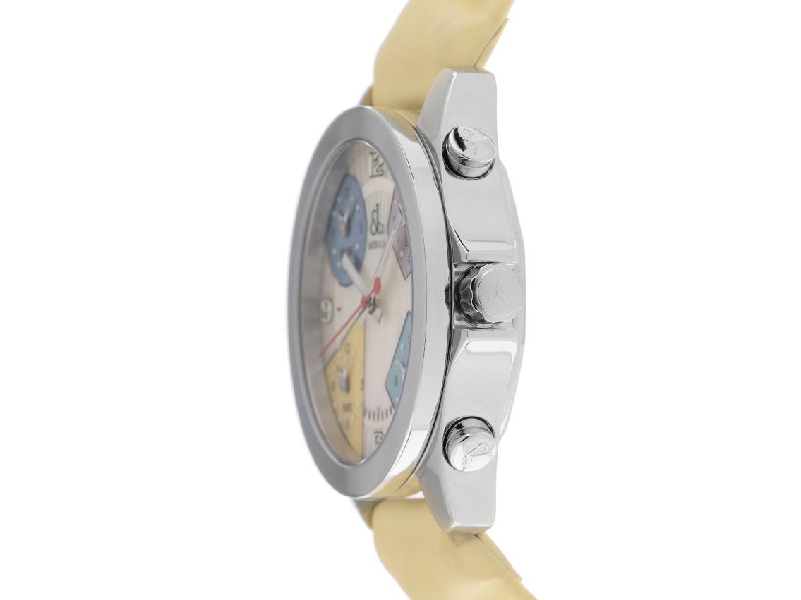 Gehäuse Edelstahl poliert, Gehäusedurchmesser ohne Krone 40mm, Gehäusehöhe 12,5mm. Lünette Edelstahl glatt und poliert. Jacob & Co Armband Kautschuk Pastell gelb mit Ziernaht, Anstoßbreite 20mm, Jacob & Co. Falsa pulseira em Edelstahl com logótipo do vendedor. Zifferblatt Perlmutt mit arabischen Ziffern und polierten Edelstahl Zeigern sowie roter Sekundenzeiger. Caixa de ferramentas com 5 botões diferentes, calibre ETA 4x 280.002 com 5 botões e 1x 980.106 com 7 botões. Indicação do tempo, dos minutos e das horas por meio de um marcador com um botão de paragem para indicar as horas, indicação das horas, indicação das horas às 2, 4, 8 e 10 horas. Saphirglas kratzfest. Coroa com proteção de flanco e logótipo do vendedor. Corpo em Edelstahl verschraubt und graviert. Peso da unidade, incluindo a braçadeira, 100g. Gehäusenummer: AXXX, Ano de fabrico: 2000, ID: KD138232000225H-4900, Artikelnummer: 10000078430. Mit Gangkontrolle, neuer Batterie und kompletter äußerlicher Aufarbeitung von Februar 2025, inkl. 1000 Tage Garantie. Caixa original Jacob & Co e Uhrenpass sowie ein Wechselband Leder gelb. Superschnäppchen, extrem seltenes Sammlerstück, fast nicht getragen. Muito bom estado de conservação. Entrega imediata.