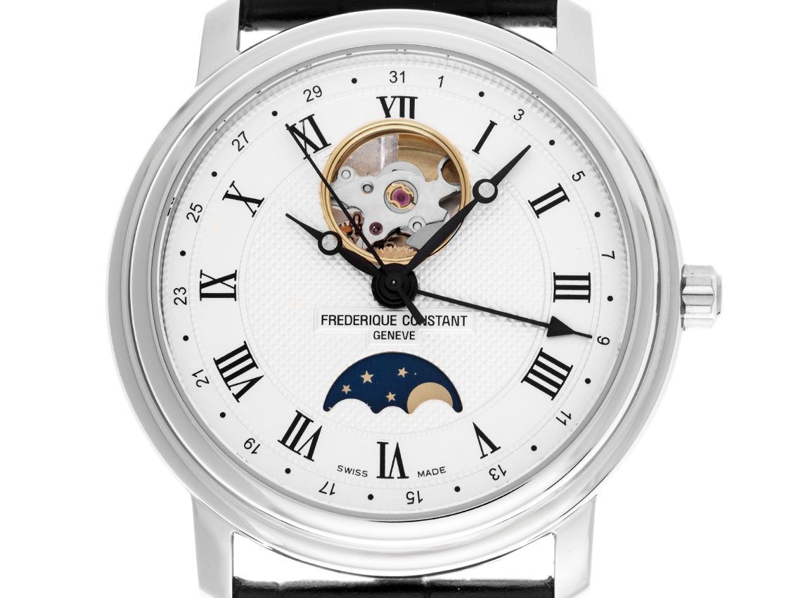 Frederique Constant Classic Heart Beat Mondphase Stahl Automatik Armband Krokoleder