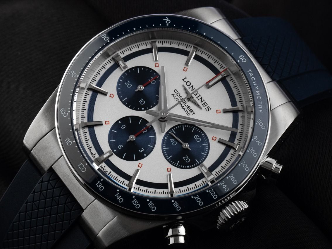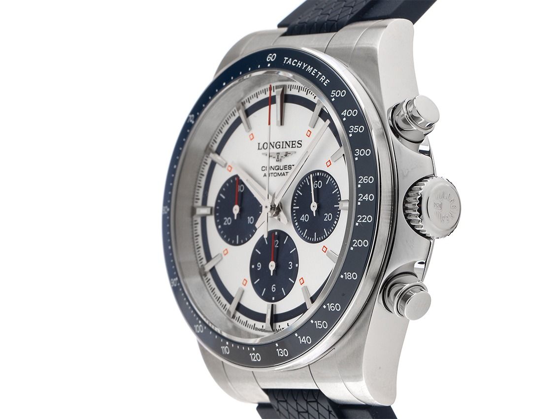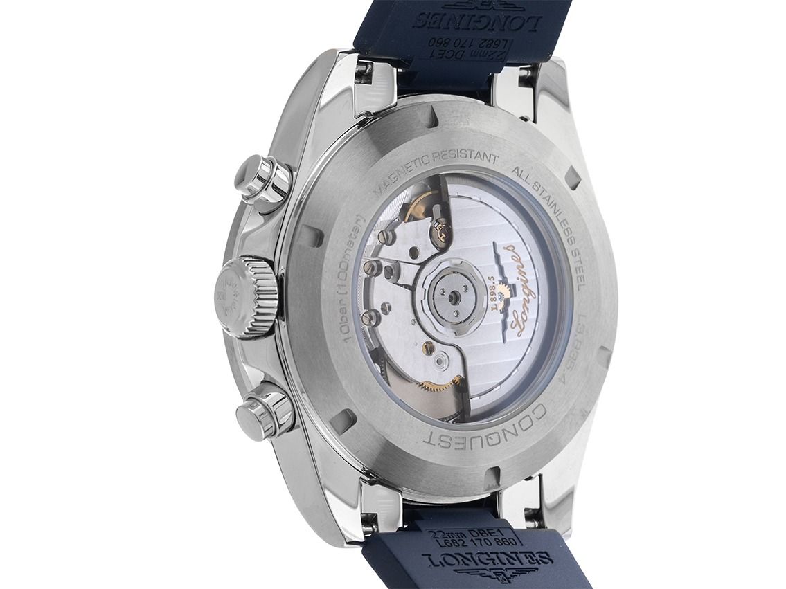 Longines Conquest Stahl Automatik Chronograph Armband Kautschuk Faltschließe