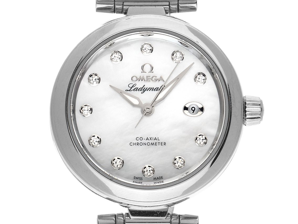 Omega De Ville Ladymatic Stahl Diamanten Perlmutt Automatik Armband Stahl