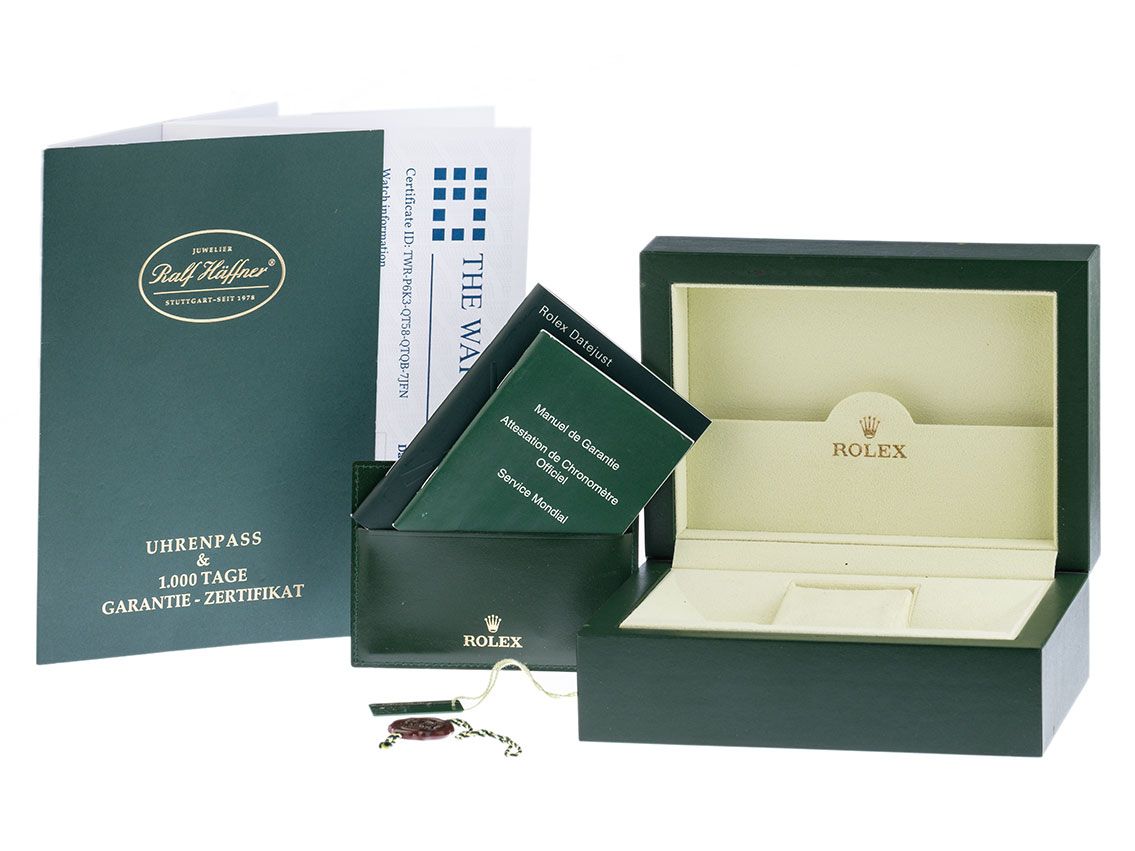 Inklusive certified pre owned Zertifikat / Uhrenpass mit einem Farbbild, der genauen Beschreibung sowie dem Wiederbeschaffungswert der Uhr über 10500,-€ und 1000 Tage Garantie ab Kaufdatum.