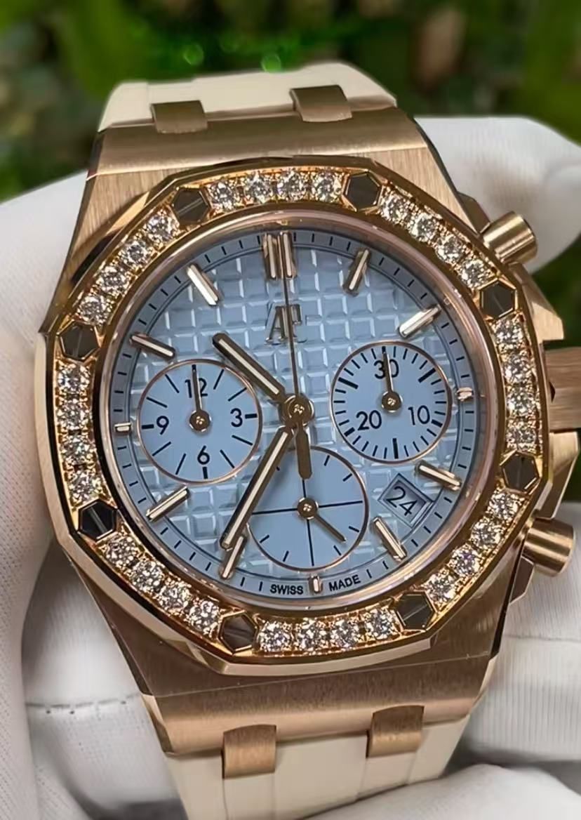 Audemars Piguet 26231OR.ZZ.A085CA.01 Royal Oak OffShore 26231 Lady Chronograph Pink Gold - Diamond / Blue