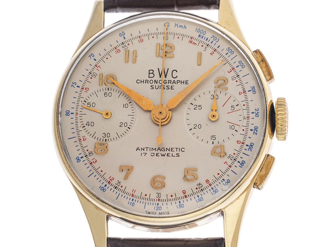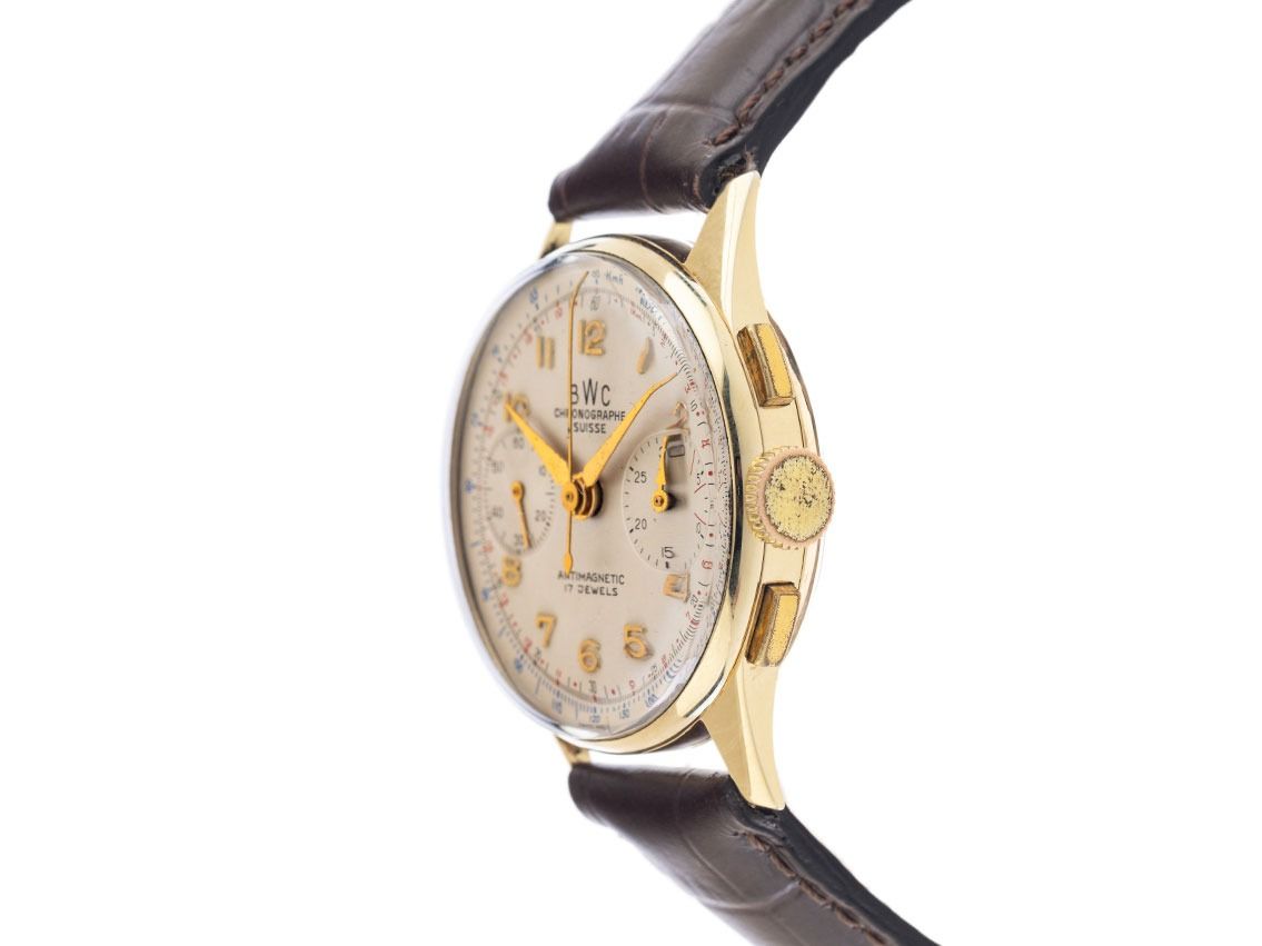BWC Chronographe Suisse 14kt Gelbgold Handaufzug Armband Leder