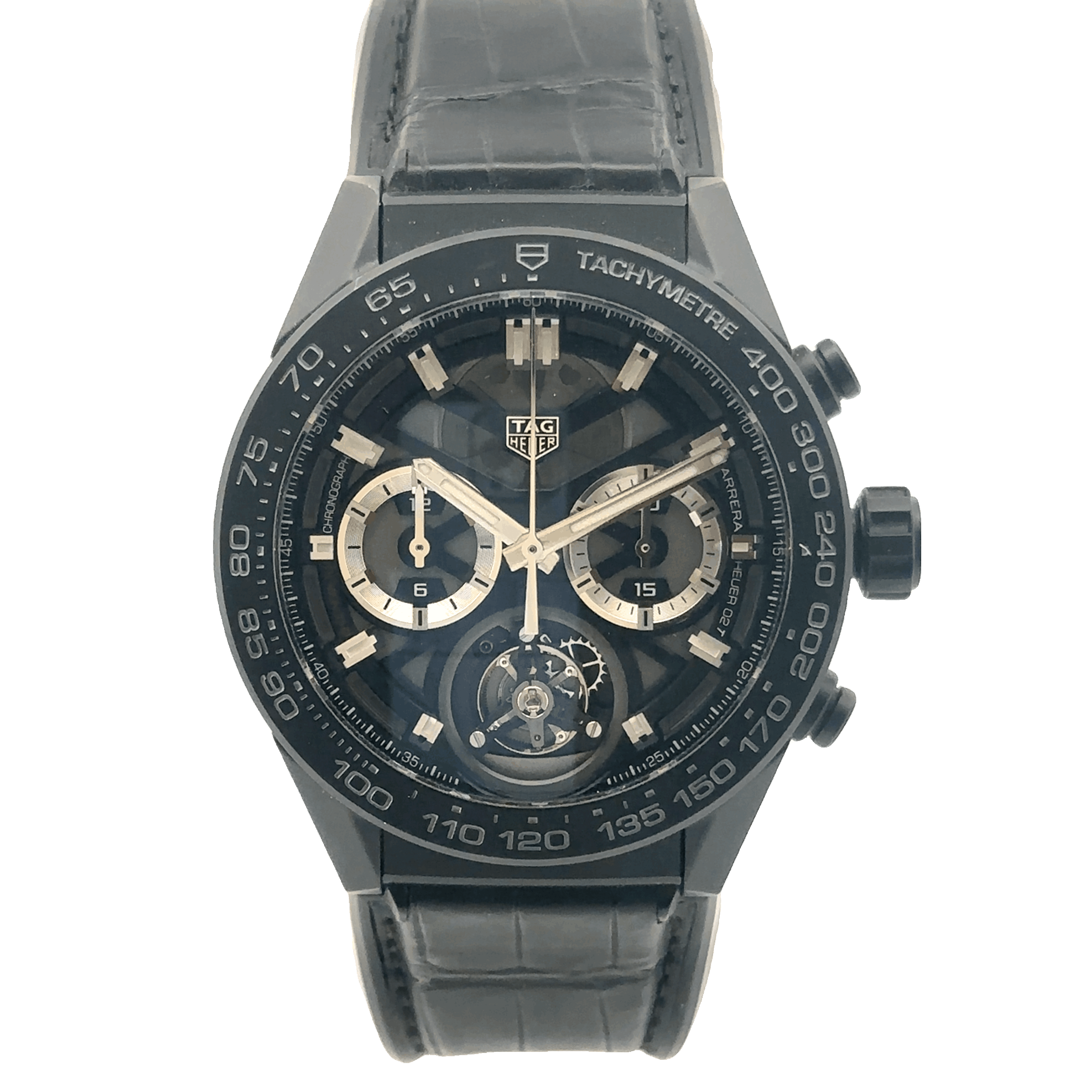 TAG Heuer Carrera Heuer-02T TAG Heuer CAR5A90.FC6415 Carrera Calibre Heuer 02T 45 Chronograph Tourbillon Ceramic / Alligator