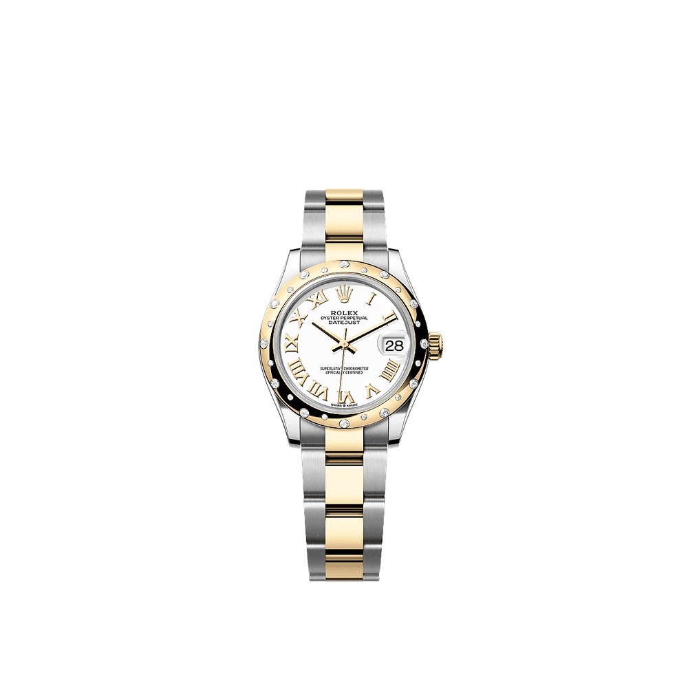 Rolex 278343RBR-0001 - Datejust 31 Stainless Steel / Yellow Gold / Domed - Diamond / White - Roman / Oyster