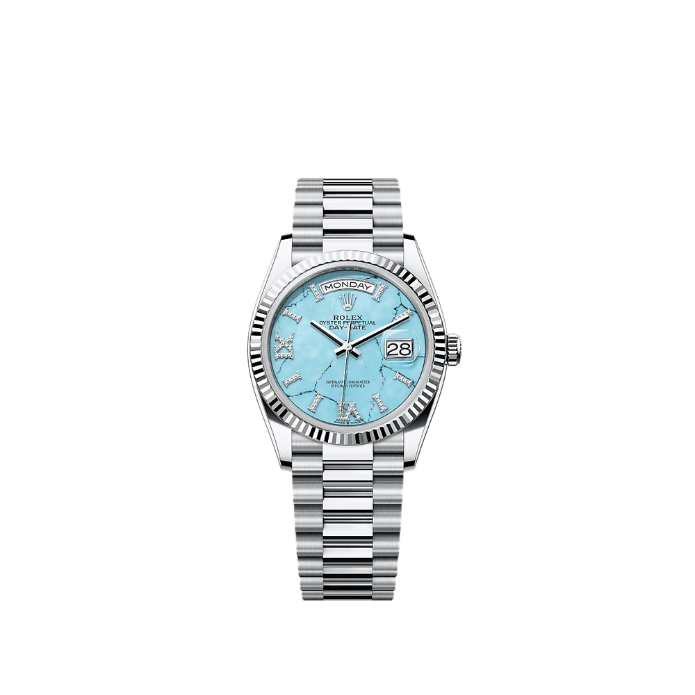 Rolex Day-Date 36 Rolex 128236-0011 Day-Date 36 Platinum - Fluted / Turquoise / President