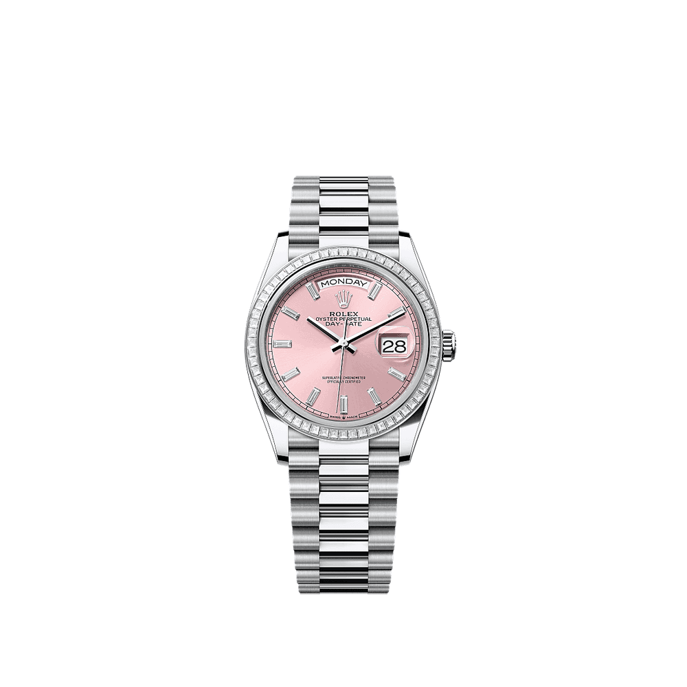 Rolex Day-Date 36 Rolex 128396TBR-0025 - Day-Date 36 Platinum - Baguette / Pink - Baguette / President