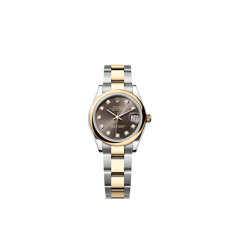 Rolex 278243-0021 Datejust 31 Aço inoxidável / Ouro amarelo / Cúpula / Cinzento - Diamante / Oyster