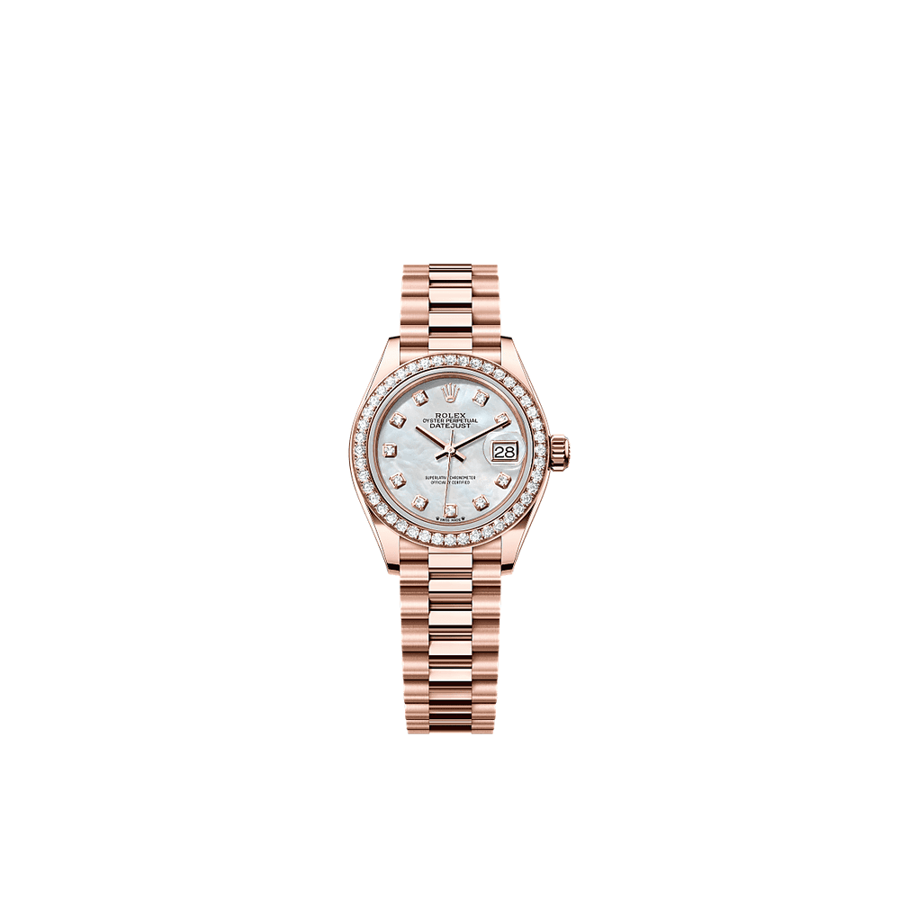 Rolex 279135RBR-0010 - Lady-Datejust 28 Everose Diamond / President / MOP