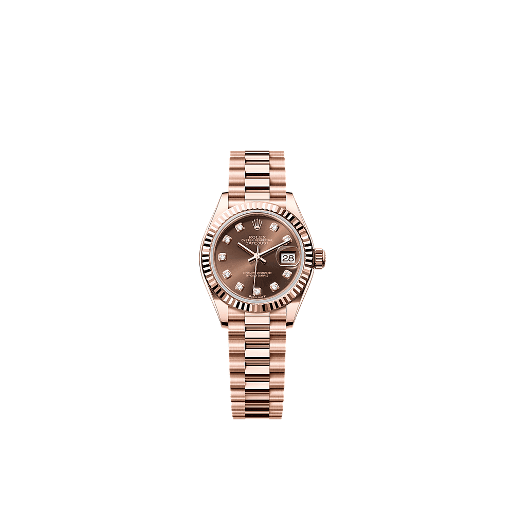 Rolex 279175-0016 Lady-Datejust 28 Everose Fluted / President / Chocolate Diamond