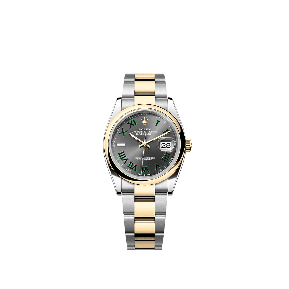 Rolex 126203-0036 (Wimbledon) Datejust 36 Aço inoxidável / Ouro amarelo / Liso / Ardósia romana / Oyster