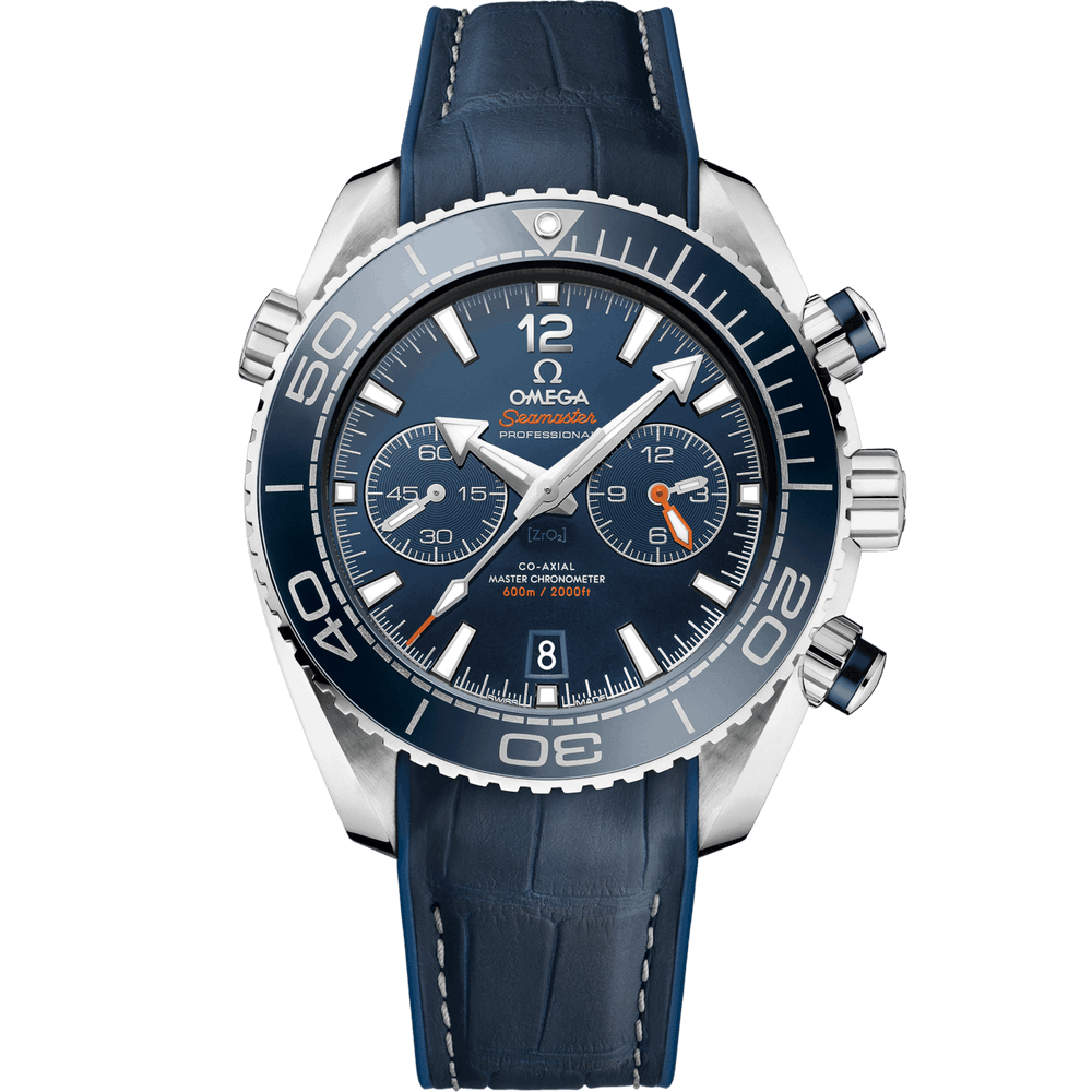Omega 215.33.46.51.03.001 Seamaster Planet Ocean 600M Co-Axial 45.5 Master Chronometer Chronograph Aço inoxidável / Azul / Crocodilo