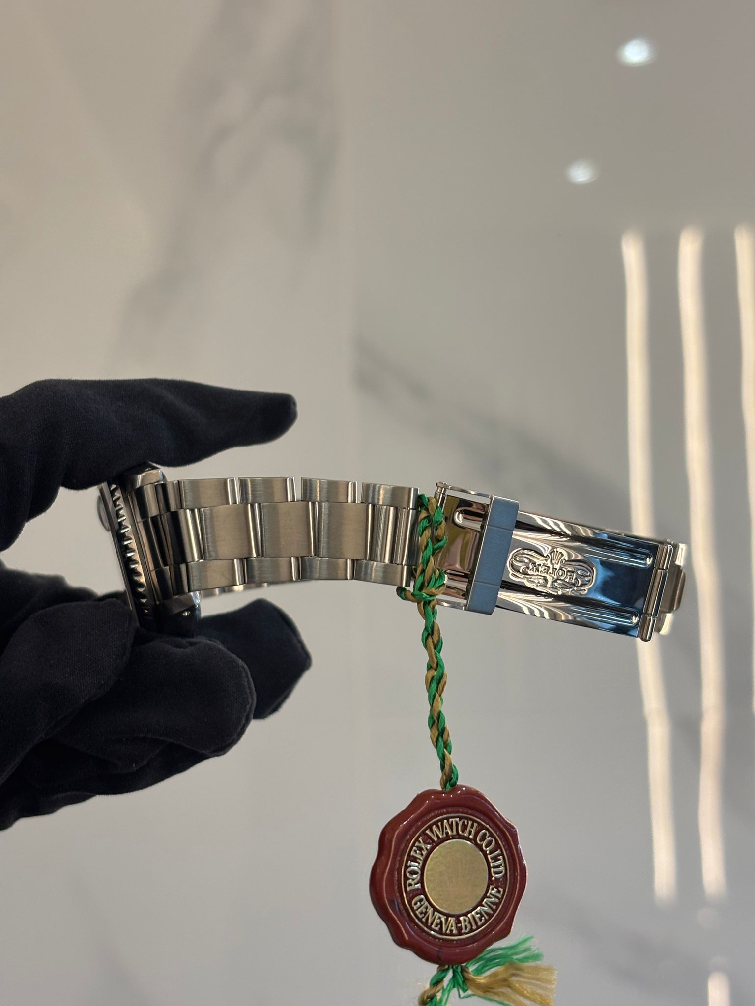 ROLEX Watches: All Rolex watches sold by us come with the Original Box, Green Chronometer Tag, booklets, and Warranty Card (if stated that “papers” are included in the listing information). The Warranty Card will be named and dated if applicable. Stickers will have been removed at the time of purchase from the Authorized Rolex Dealer, unless otherwise stated. The watch may be sized from the time of purchase however it has never been worn (if condition stated as “Unworn/New”) and comes with all standard links that come on Rolex Bracelet models. It may also come with the white serial tag, but that is not guaranteed as some Authorized Dealers keep the tag. Because we often stock several of the same model watch, even if the watch is pictured with the white serial tag, it is not guaranteed to come with it. The watch may also be newer than the noted on our listing. If we list as a 2024 Unworn, you may receive a 2025 Unworn. It is possible that the pictured watch in the ad has “stickers” on the watch, but you will receive a watch with stickers removed unless otherwise stated in the listing. You may receive a watch that has been wrapped in plastic by us, to prevent scratches during transit. Bezel protectors, even if pictured, are not always included.