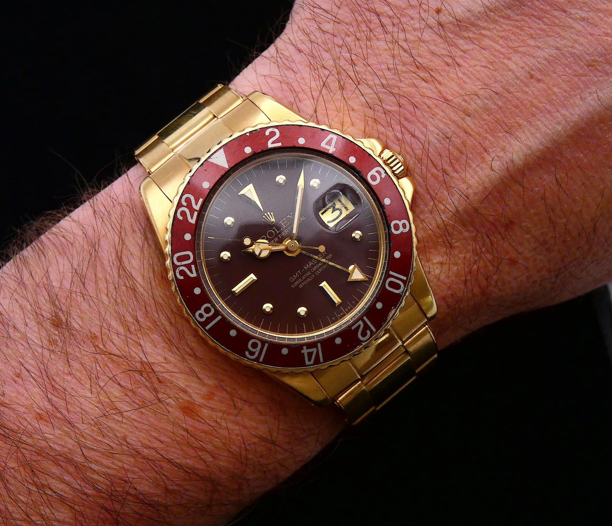 Rolex GMT-Master 1675/8 1969 / mostrador em forma de mamilo / rebite