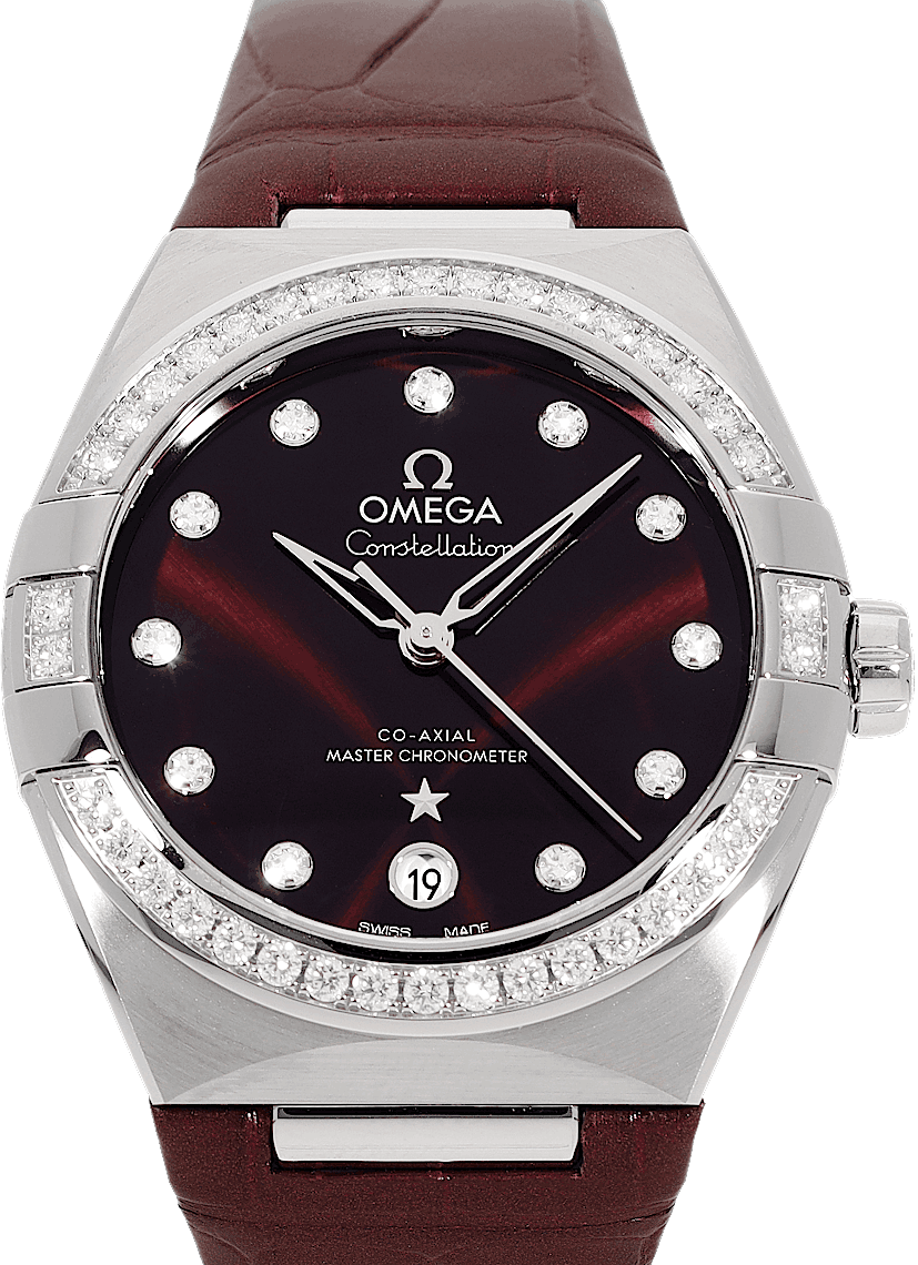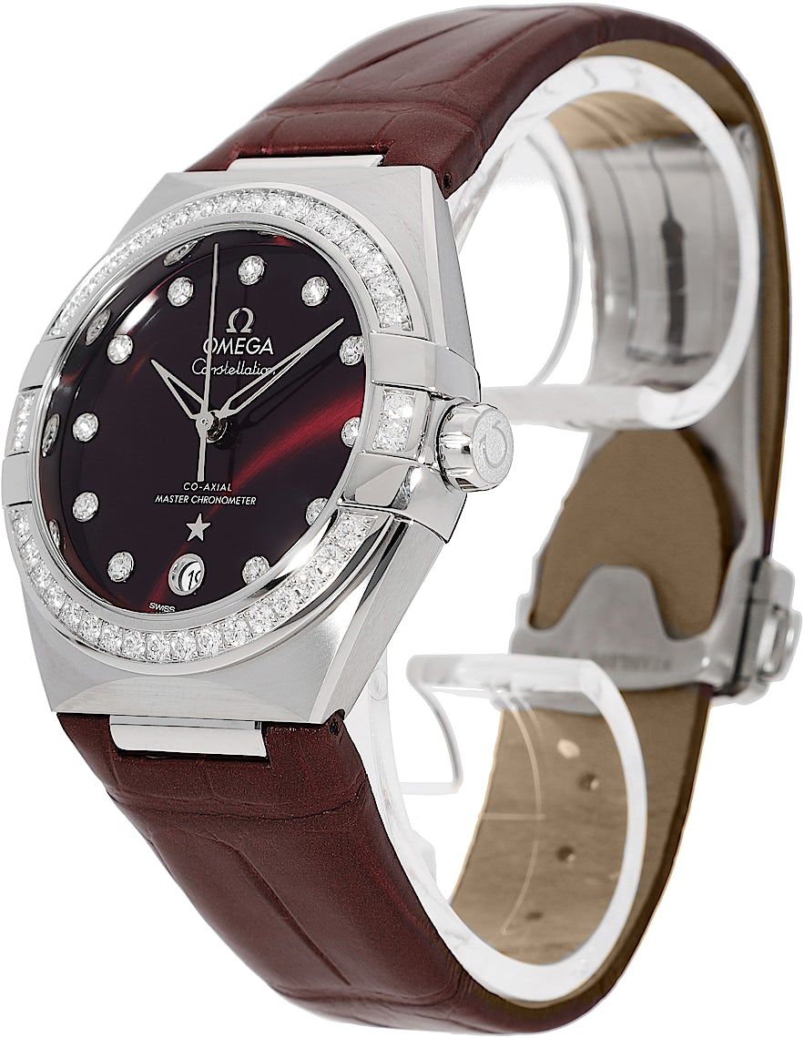 Omega Constellation, Reference: 131.18.36.20.61.001, Gender: Female, Size: 36mm, Dial color: Red, Strap material: Alligator Leather, Movement: Automatic, Year: 2023, Condition: New and unworn. An inspection by our certified watchmakers guarantees authenticity., Documents: Original papers, CHRONEXT Certificate