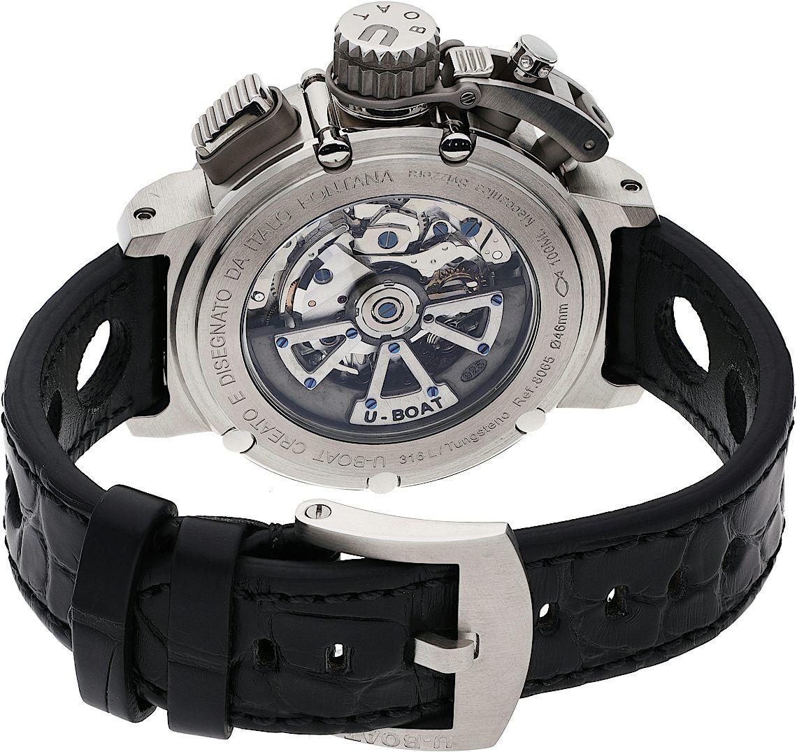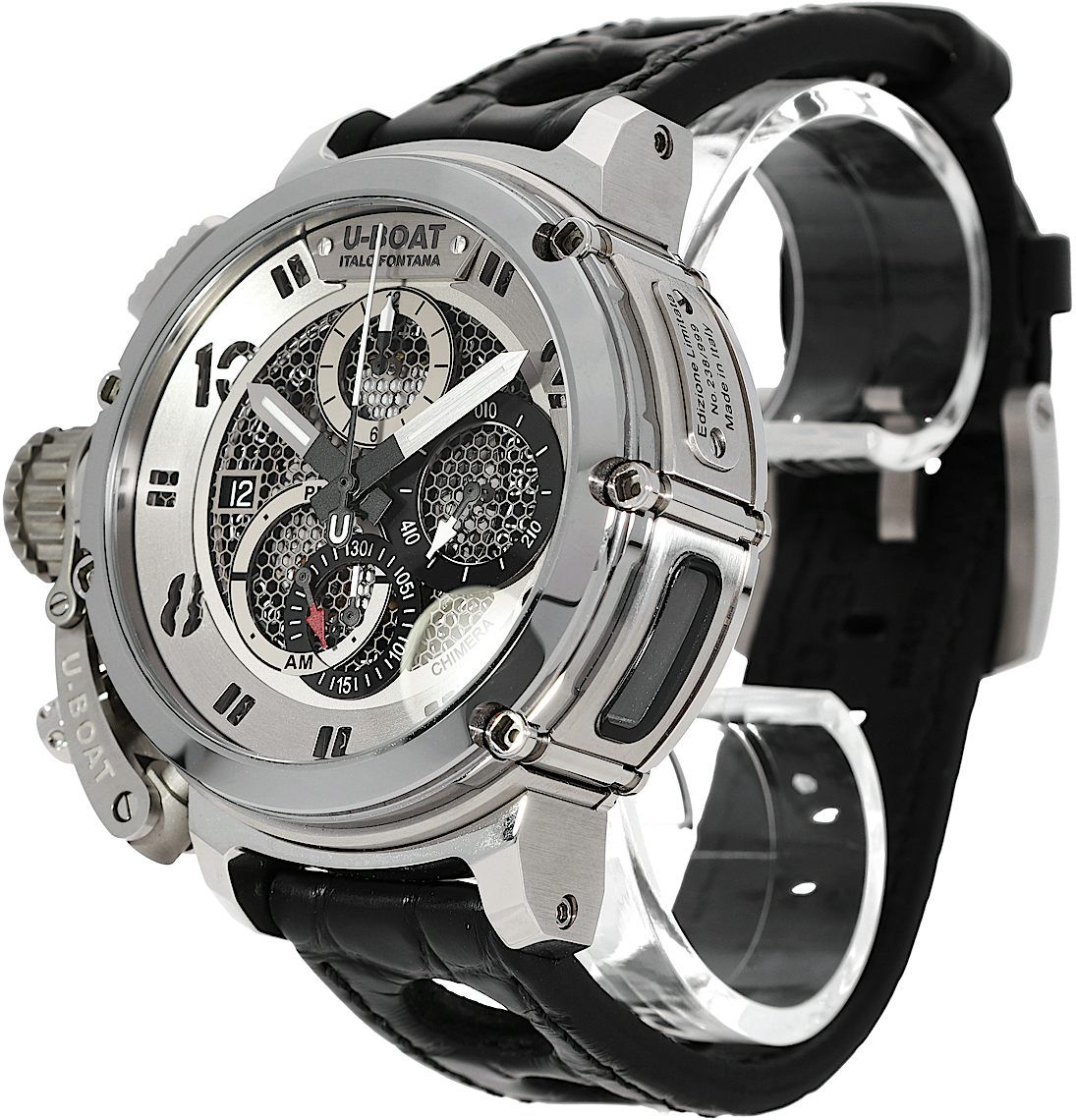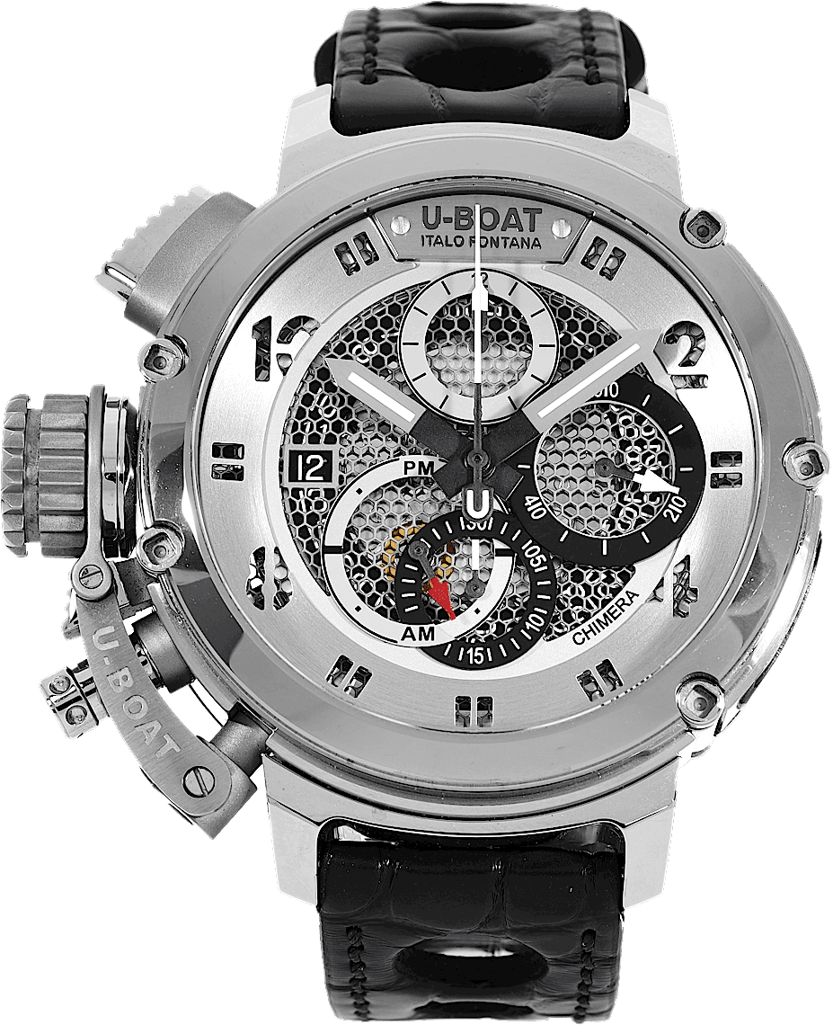 U-Boat Chimera 46 SS Tungsteno Ltd, Reference: 8065, Gender: Male, Size: 46mm, Dial color: Silver, Strap material: Alligator Leather, Movement: Automatic, Year: 2022, Condition: Previously worn, minor to no signs of usage. The movement is flawless and the case has been cleaned. watch tested ensure full functionality. An inspection by our certified watchmakers guarantees its authenticity., Documents: Original papers, CHRONEXT Certificate