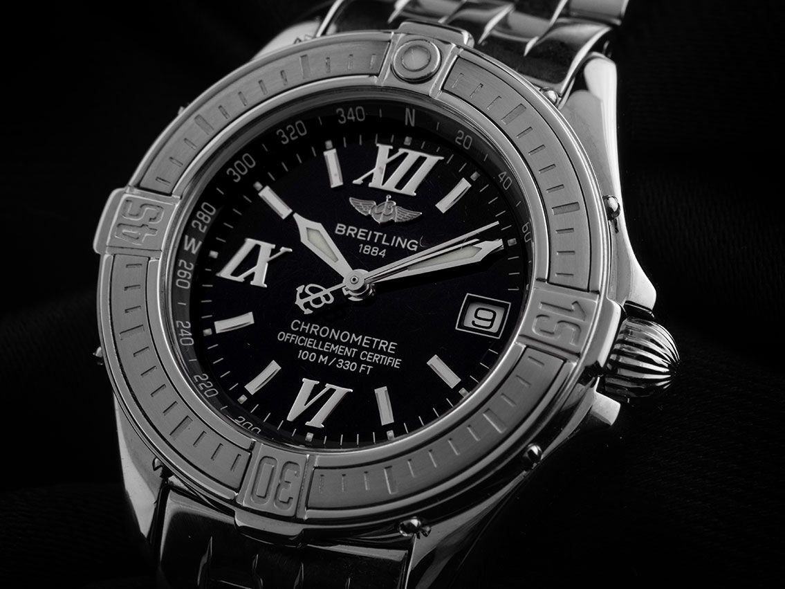 Breitling Cockpit B-Class Stahl Quarz Armband StahlGehäuse Edelstahl poliert, Gehäusedurchmesser ohne Krone 30mm, Gehäusehöhe 11,0mm. Lünette Edelstahl poliert mit 60-Minuten Einteilung, einseitig drehbar. Breitling Pilot Armband Edelstahl poliert, Sicherheitsfaltschließe Edelstahl mit Hersteller-Logo. Zifferblatt schwarz mit aufgesetzten römischen Ziffern und Edelstahl Indexen sowie Edelstahl Zeigern. Uhrwerk quarzgesteuert, Kaliber Breitling B7 mit 7 Edelsteinen. Anzeige von Stunde, Minute und Sekunde über Zeiger aus der Mitte mit Sekundenstopp zur sekundengenauen Einstellung der Uhrzeit, Datumsanzeige mit Schnellverstellung bei 3 Uhr. Saphirglas kratzfest und gewölbt. Krone mit Flankenschutz. Boden Edelstahl verschraubt und graviert. Gewicht der Uhr inklusive Armband 78g, Länge des Armbandes inklusive Gehäuse 155mm. Referenznummer: A71356, Gehäusenummer: 381XXX, Baujahr: 2005, ID: P101920000625H-4200, Artikelnummer: 10000080641. Mit Gangkontrolle, neuer Batterie und kompletter äußerlichen Aufarbeitung von Juni 2025. Original Breitling Service Box und Watchregister Auszug von Juni 2025, The Watch Register Zertifikat / ohne Eintrag (Internationale Datenbank für verlorene oder gestohlene Uhren). Sehr guter Zustand. Superschnäppchen, sehr seltenes Sammlerstück, fast nicht getragen. Lieferzeit sofort.