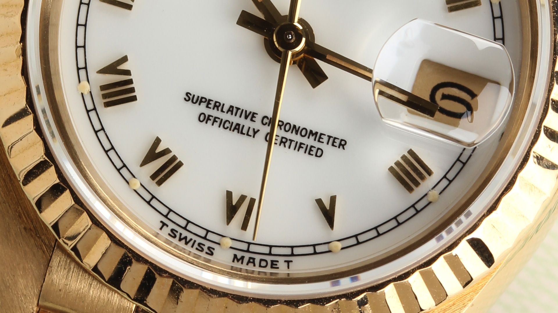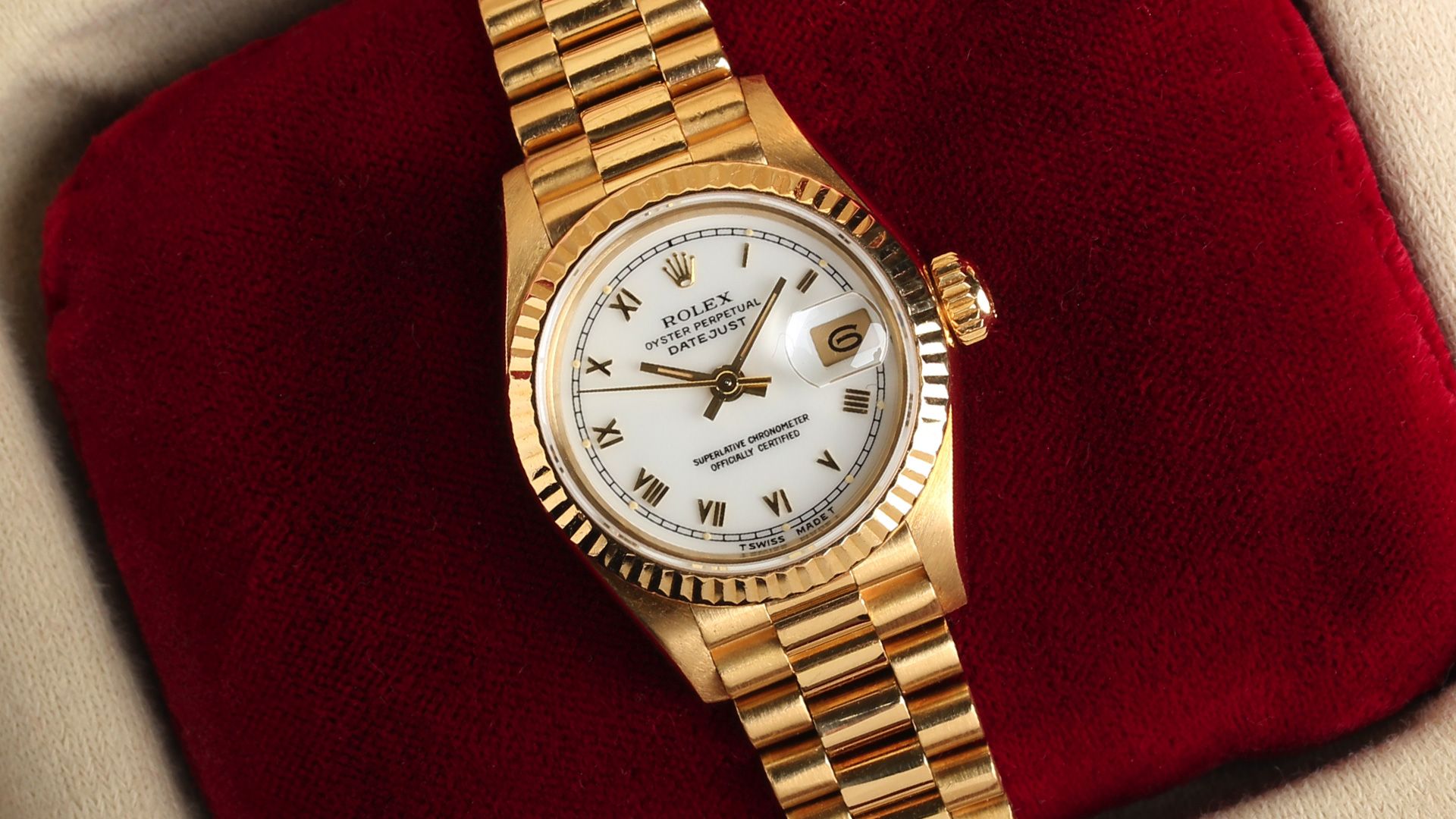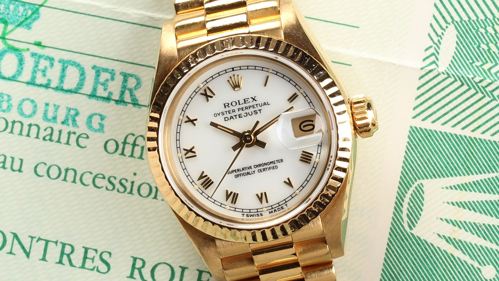 Este Lady-Datejust, referência 69178 de 1987, é um clássico intemporal por direito próprio. Mas este exemplar em particular vai um pouco mais longe com um pormenor extraordinário: um mostrador em porcelana imaculada com algarismos romanos aplicados em ouro amarelo. Acompanhado da caixa e dos documentos originais, com caixa em ouro amarelo maciço de 18 quilates e a sua bracelete Lady President original em ouro maciço de 18 quilates, este é um Rolex para senhora com um toque de elegância. Introduzida pela primeira vez no final da década de 1970, a referência 69178 tornou-se uma pedra angular da coleção Lady-Datejust. Apresentava um movimento mais refinado, o calibre 2135 quickset, e deu continuidade ao legado da Rolex de produzir relógios de senhora intransigentes - tanto mecanicamente fiáveis como icónicos. Como já foi referido, todo o relógio é manufaturado em ouro amarelo de 18 quilates e, hoje em dia, possui o calor e a elegância inconfundíveis da composição em ouro vintage da Rolex da icónica linha President.