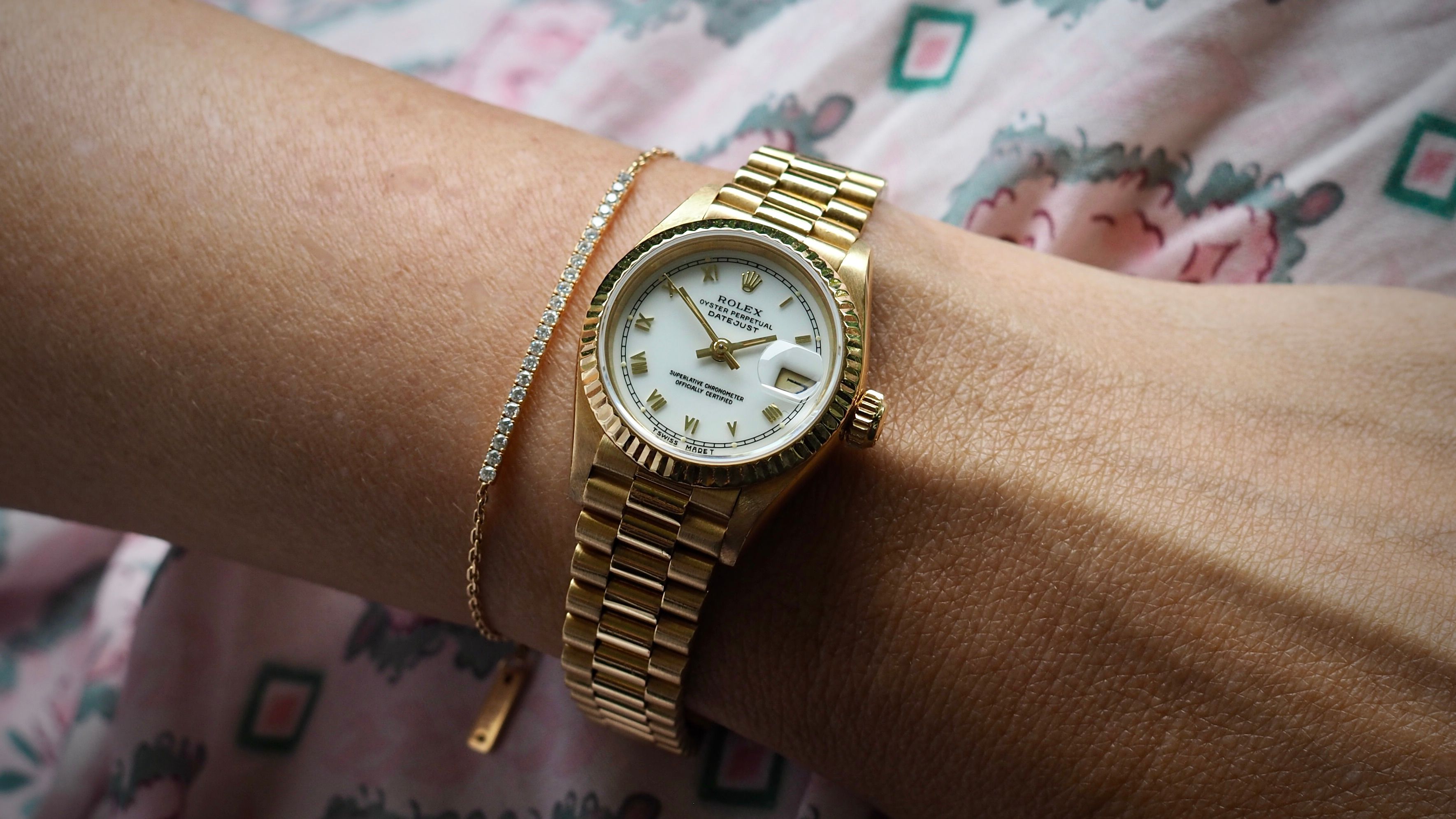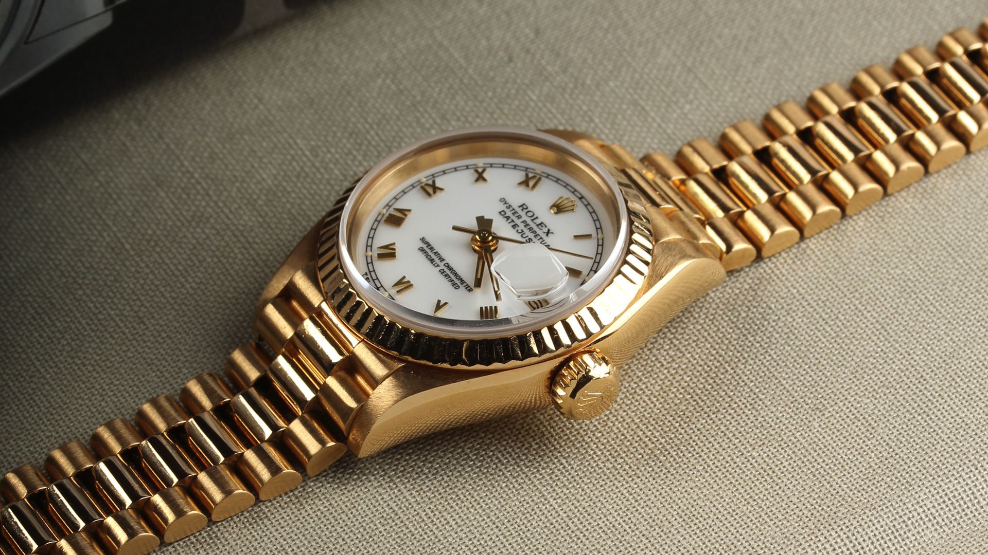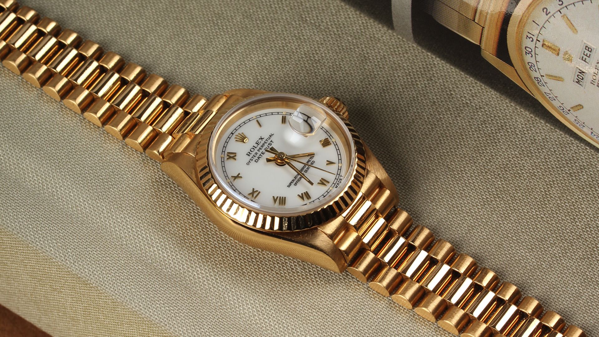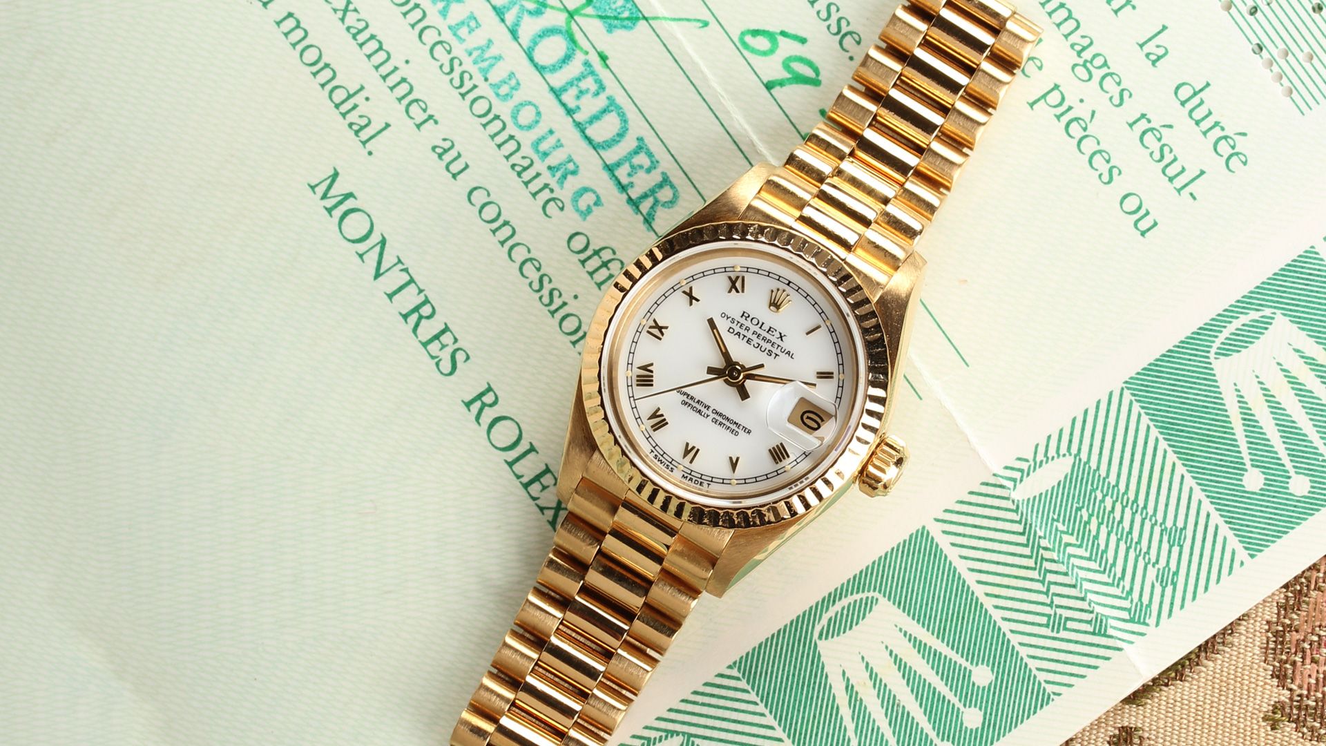 Este Lady-Datejust, referência 69178 de 1987, é um clássico intemporal por direito próprio. Mas este exemplar em particular vai um pouco mais longe com um pormenor extraordinário: um mostrador em porcelana imaculada com algarismos romanos aplicados em ouro amarelo. Acompanhado da caixa e dos documentos originais, com caixa em ouro amarelo maciço de 18 quilates e a sua bracelete Lady President original em ouro maciço de 18 quilates, este é um Rolex para senhora com um toque de elegância. Introduzida pela primeira vez no final da década de 1970, a referência 69178 tornou-se uma pedra angular da coleção Lady-Datejust. Apresentava um movimento mais refinado, o calibre 2135 quickset, e deu continuidade ao legado da Rolex de produzir relógios de senhora intransigentes - tanto mecanicamente fiáveis como icónicos. Como já foi referido, todo o relógio é manufaturado em ouro amarelo de 18 quilates e, hoje em dia, possui o calor e a elegância inconfundíveis da composição em ouro vintage da Rolex da icónica linha President.