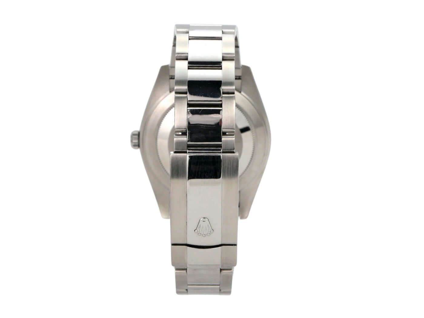 Caixa em aço inoxidável polido e acetinado, diâmetro da caixa 41 mm, luneta canelada em ouro branco de 18 kt, pulseira oyster em aço inoxidável polido e acetinado com fecho rebatível, mostrador azul com índices luminosos em ouro branco de 18 kt, movimento automático, calibre 3235 de fabrico Rolex, 70 horas de reserva de marcha, mostrador de data, cronómetro, vidro de safira resistente a riscos, coroa de rosca, fundo da caixa em aço inoxidável aparafusado, resistente à água até 10 bar.