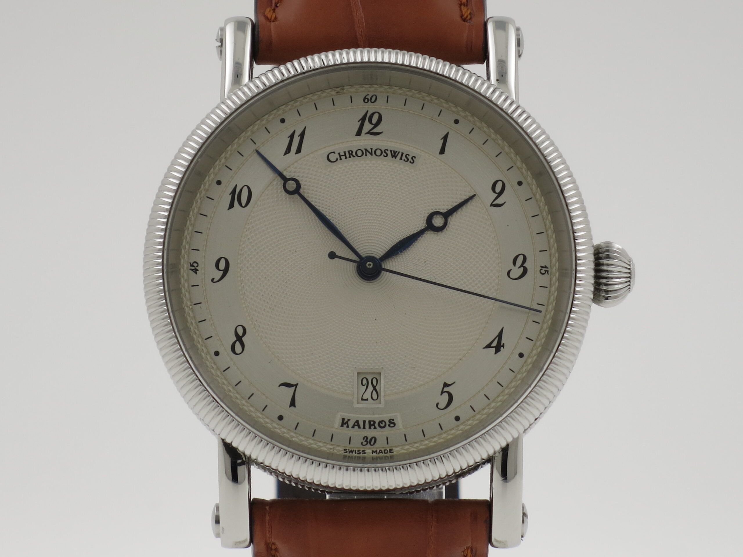 Chronoswiss Kairos 38 Automatic" 38mm. steel case with silver (925) dial. Beautiful silver dial in a 38 mm steel case with steel bezel. Shipping immediately upon receipt of payment. Our photos are NOT edited! What you see is what you get. Shipped registered and insured with Fedex Priority.