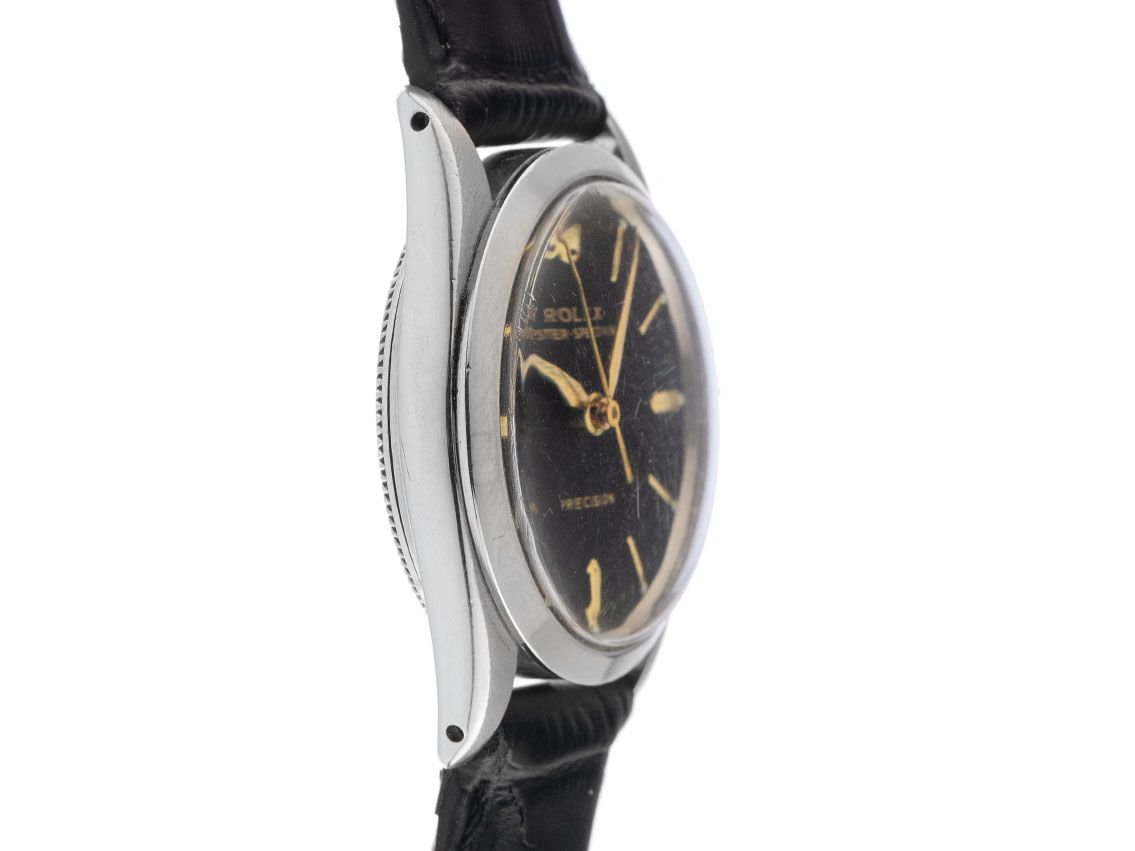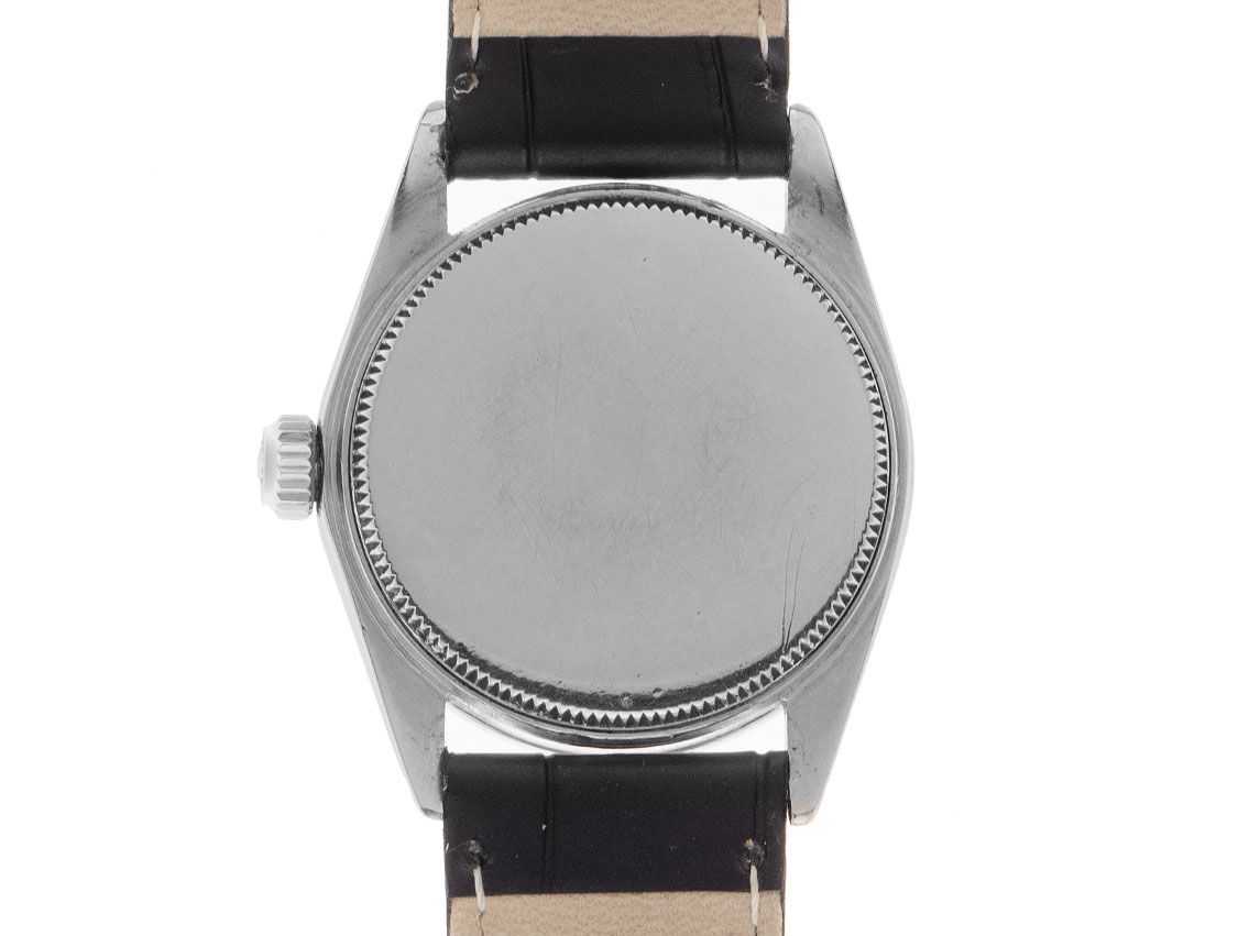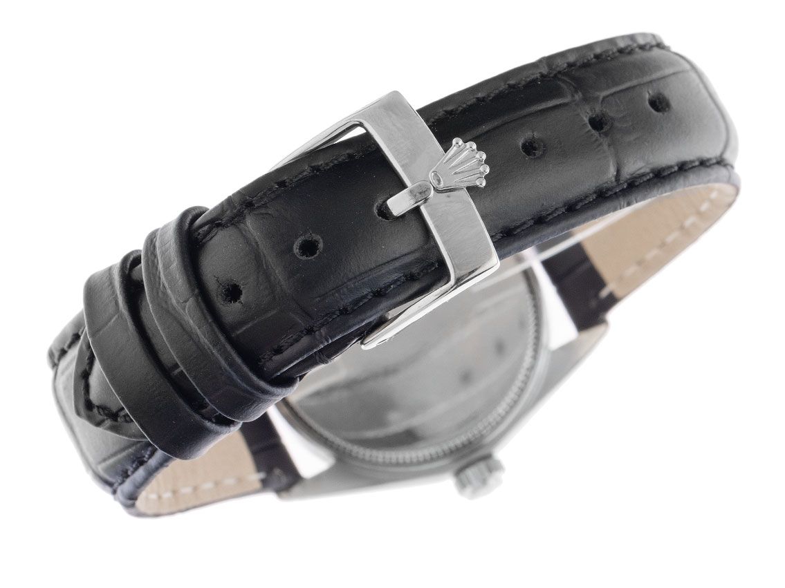 Rolex Oyster Speedking Medium Stahl Handaufzug Armband LederGehäuse Edelstahl poliert und satiniert, Gehäusedurchmesser ohne Krone 30mm, Gehäusehöhe 9,2mm. Lünette Edelstahl glatt und poliert. Armband Leder schwarz mit Ziernaht, Anstoßbreite 17mm, Stiftschließe Edelstahl mit Hersteller-Logo. Zifferblatt schwarz mit aufgesetzten gelbgoldenen Indexen und gelbgoldenen Zeigern. Uhrwerk Handaufzug, Rolex Manufakturkaliber 1215 mit 17 Edelsteinen. Anzeige von Stunde, Minute und Sekunde über Zeiger aus der Mitte. Plexiglas gewölbt. Krone verschraubbar mit Hersteller-Logo. Boden Edelstahl verschraubt. Gewicht der Uhr inklusive Armband 32g. Referenznummer: 6430, Gehäusenummer: 1619XXX, Baujahr: 1967, ID: P148031000825H-4800, Artikelnummer: 10000082164. Mit neuer Werk Revision und kompletter äußerlicher Aufarbeitung von September 2025. Original Rolex Box und Ledermäppchen, Übersetzungsheft, Tag sowie Watchregister Auszug von August 2025, The Watch Register Zertifikat / ohne Eintrag (Internationale Datenbank für verlorene oder gestohlene Uhren). Superschnäppchen, sehr seltenes Sammlerstück. Sehr guter Zustand. Lieferzeit sofort.