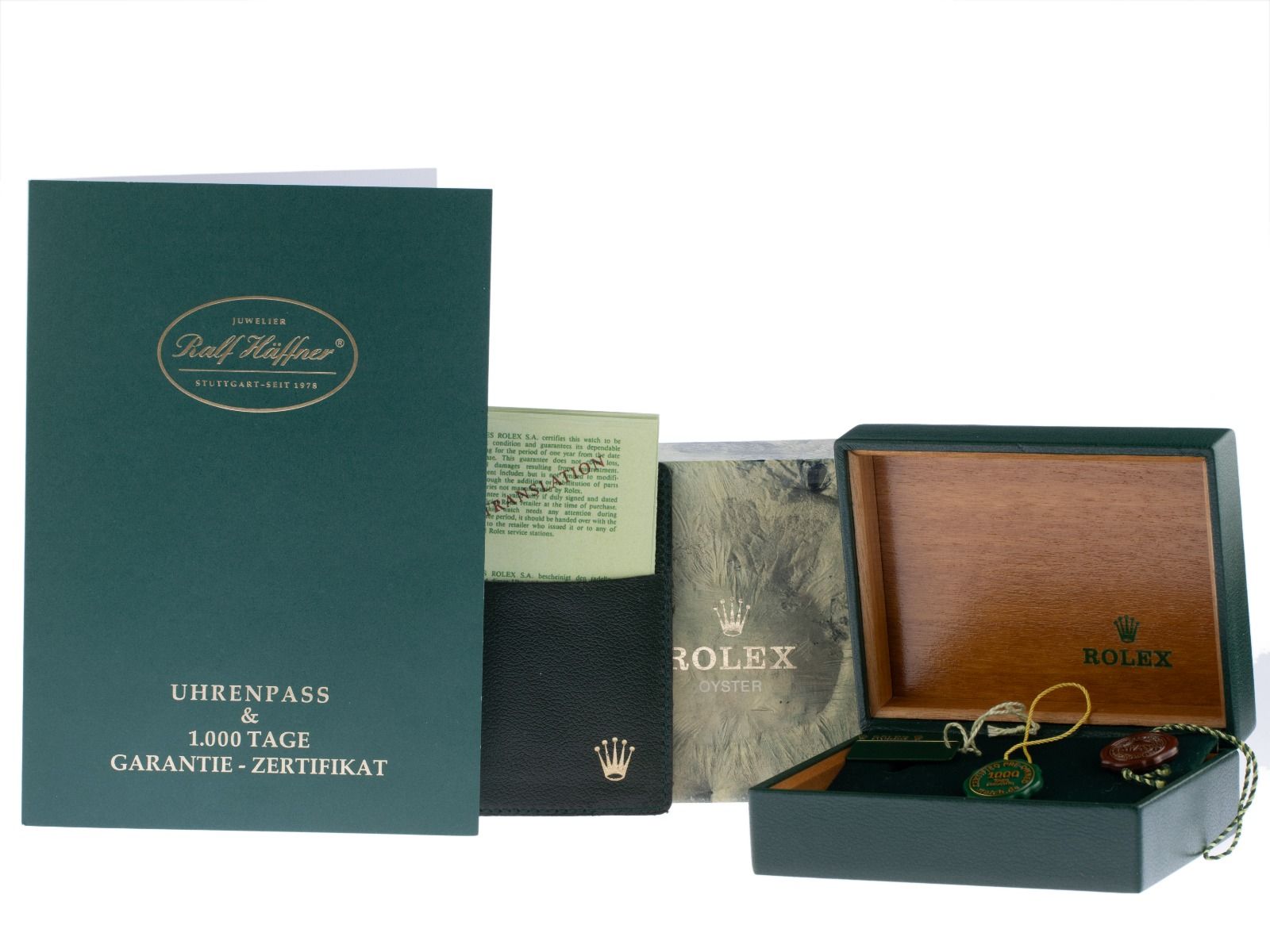 Inklusive certified pre owned Siegel / Uhrenpass mit einem Farbbild, der genauen Beschreibung sowie dem Wiederbeschaffungswert der Uhr über 6900,-€ und 1000 Tage Garantie ab Kaufdatum.
