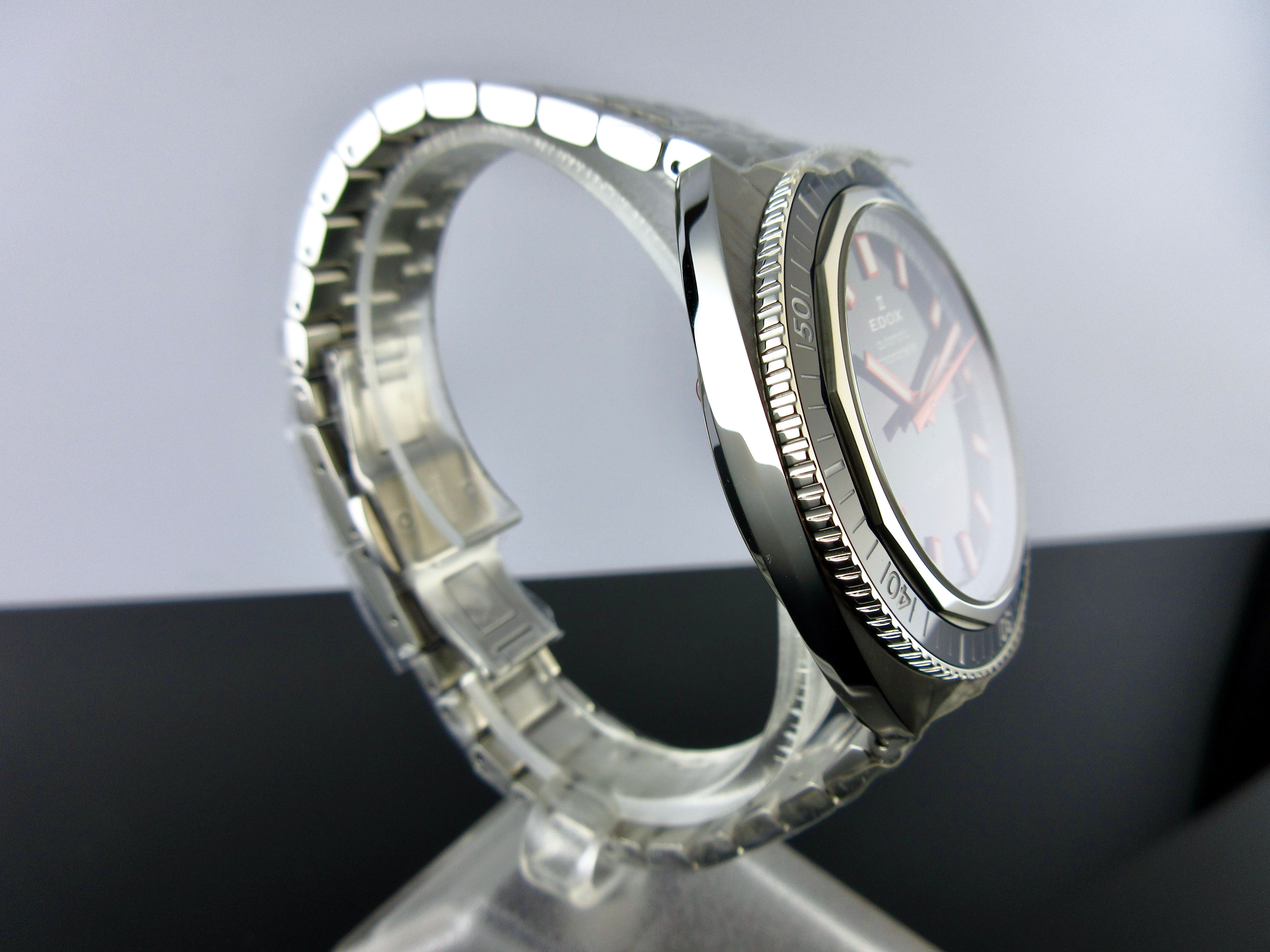 Technische Angben : Drehbare Keramiklünette , Edox Krone und/oder Drücker mit doppeltem O-Ring , Nachleuchtende Zeiger und/oder Indizes , Sicherheitsschraubkrone