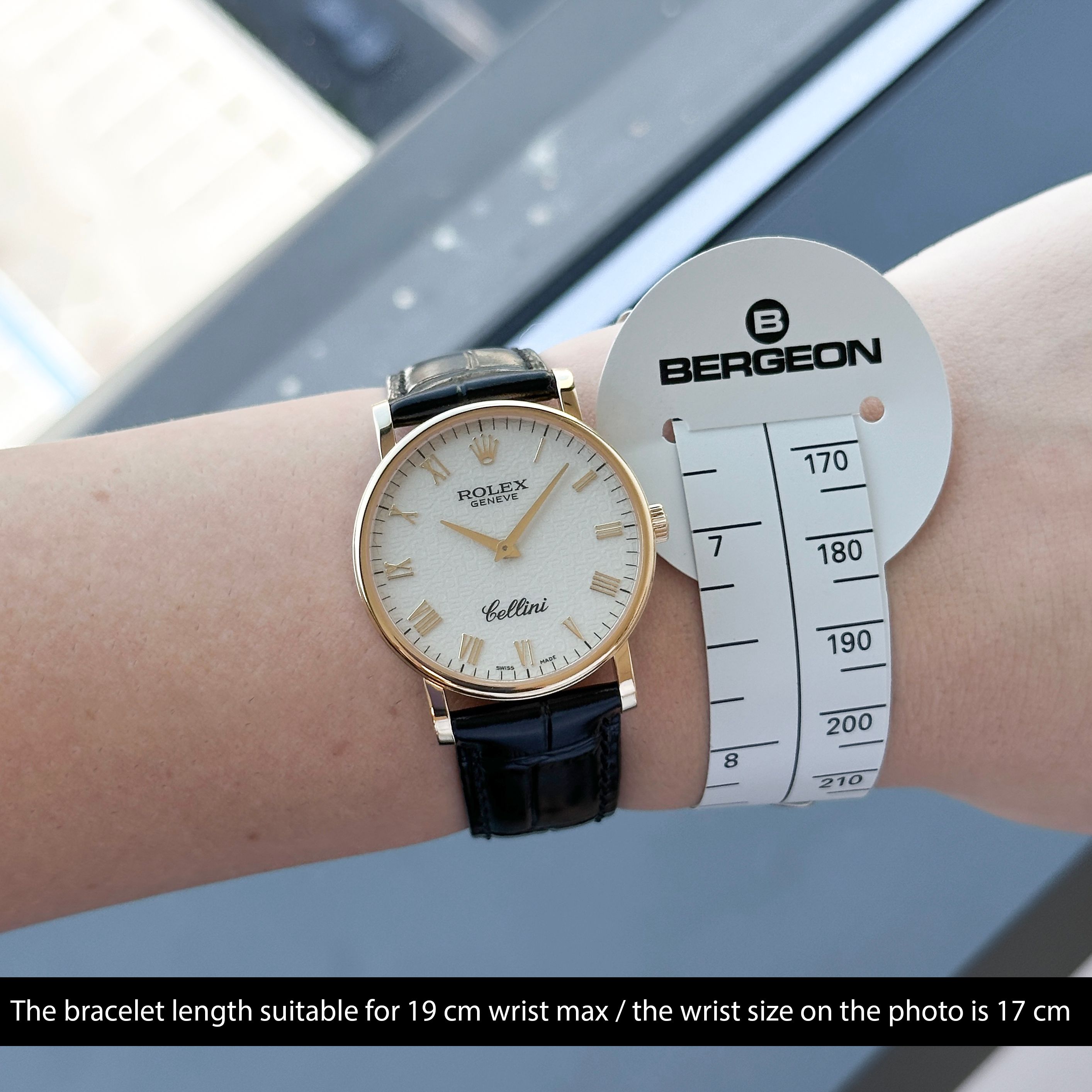 Este Rolex Cellini 5115/8 apresenta um mostrador romano em jubileu de marfim e é fabricado em ouro amarelo de 18K.