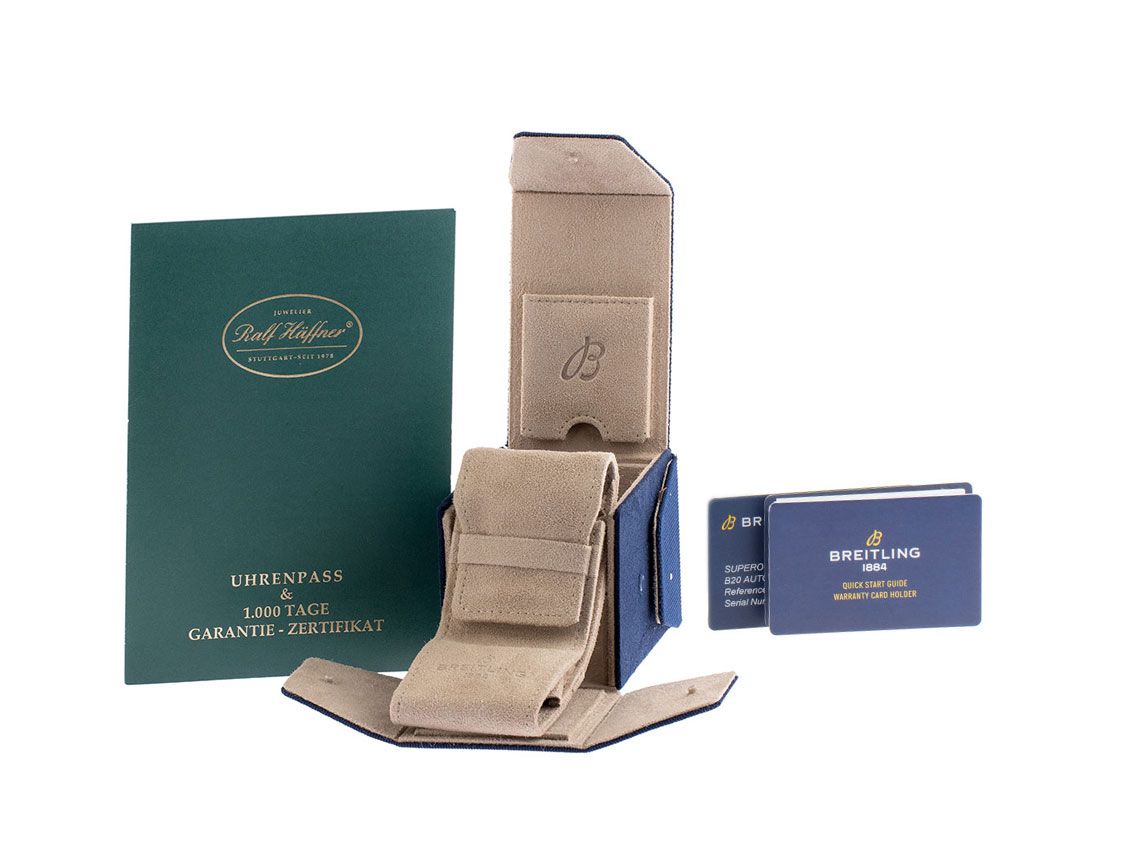 Inklusive Uhrenpass mit einem Farbbild, der genauen Beschreibung sowie dem Wiederbeschaffungswert der Uhr über 6900,-€ und 1000 Tage Garantie ab Kaufdatum.