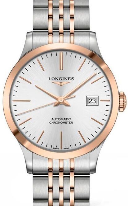 Longines Record Srebrny 39 mm Złoto/Stal