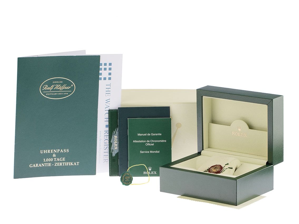 Inklusive certified pre owned Siegel / Uhrenpass mit einem Farbbild, der genauen Beschreibung sowie dem Wiederbeschaffungswert der Uhr über 10500,-€ und 1000 Tage Garantie ab Kaufdatum.