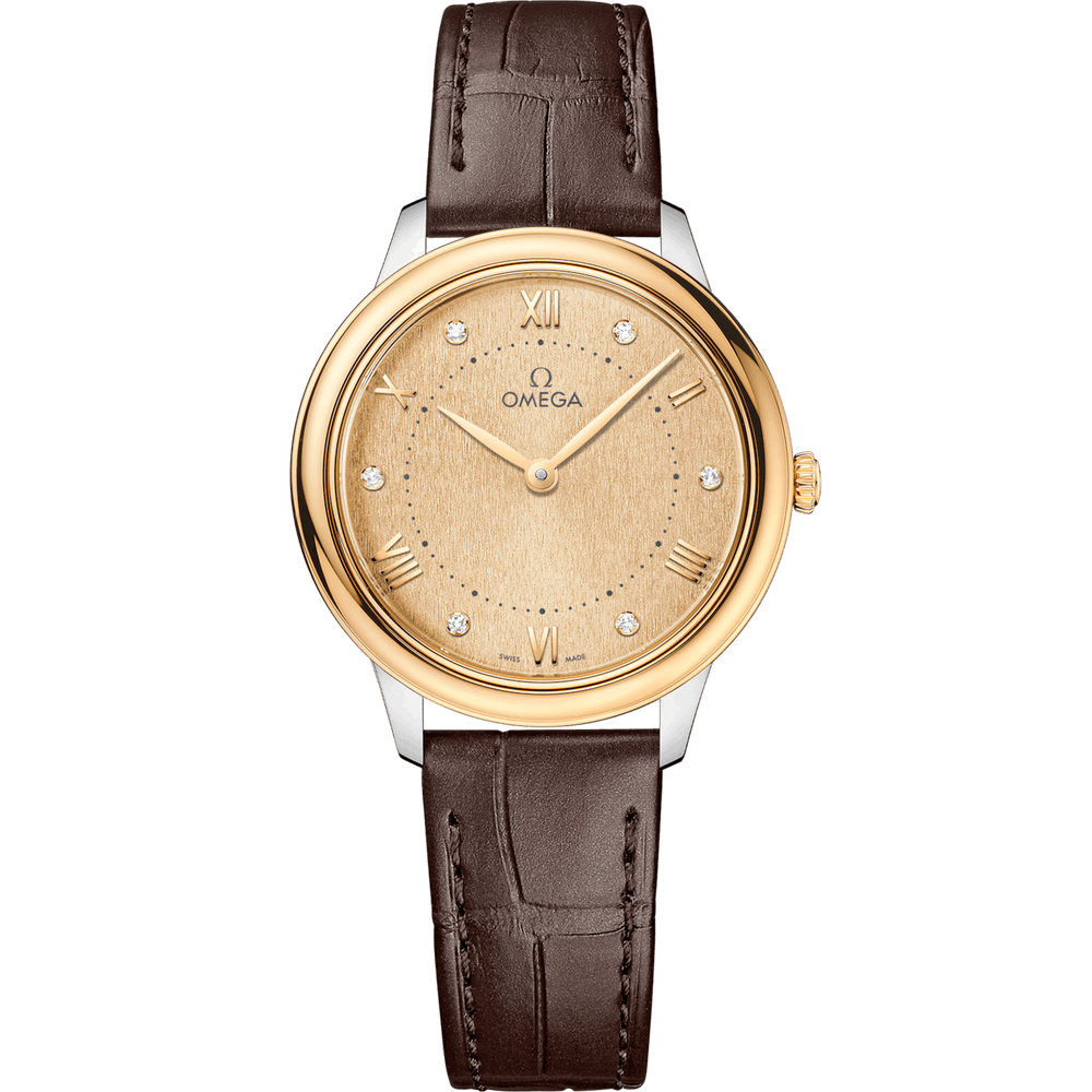 Omega 434.23.30.60.58.001 De Ville Quartz 30 Aço inoxidável - Ouro amarelo / Champanhe - Diamante