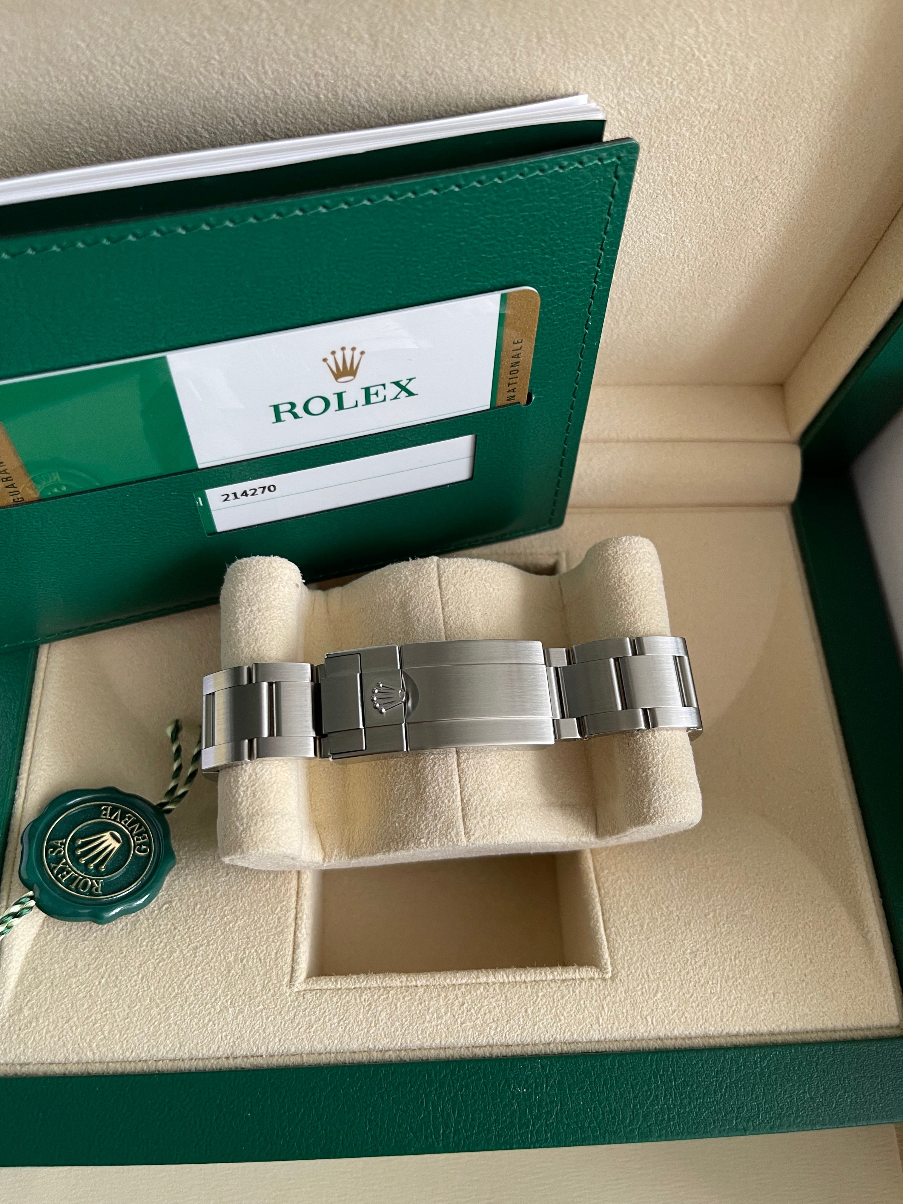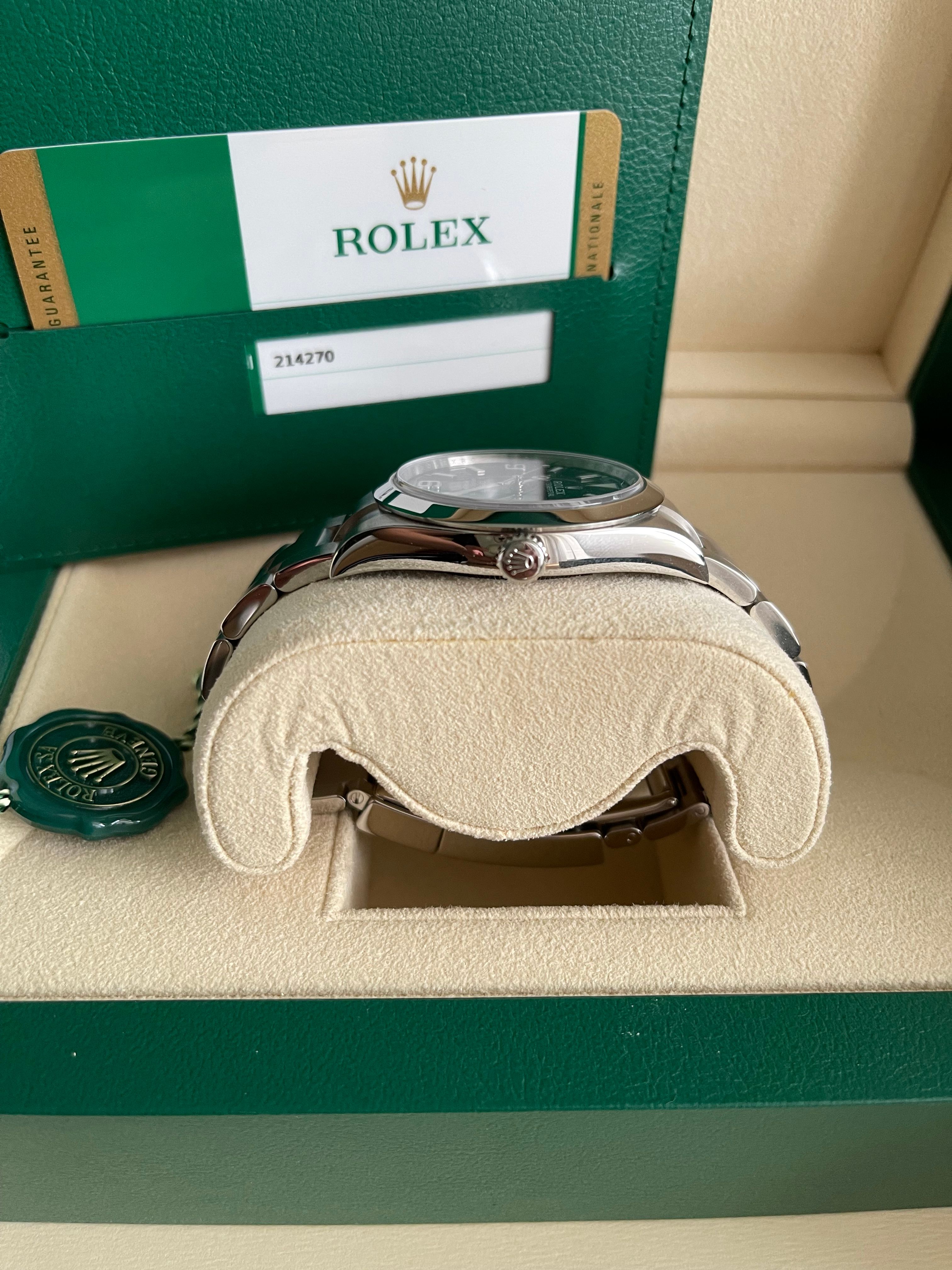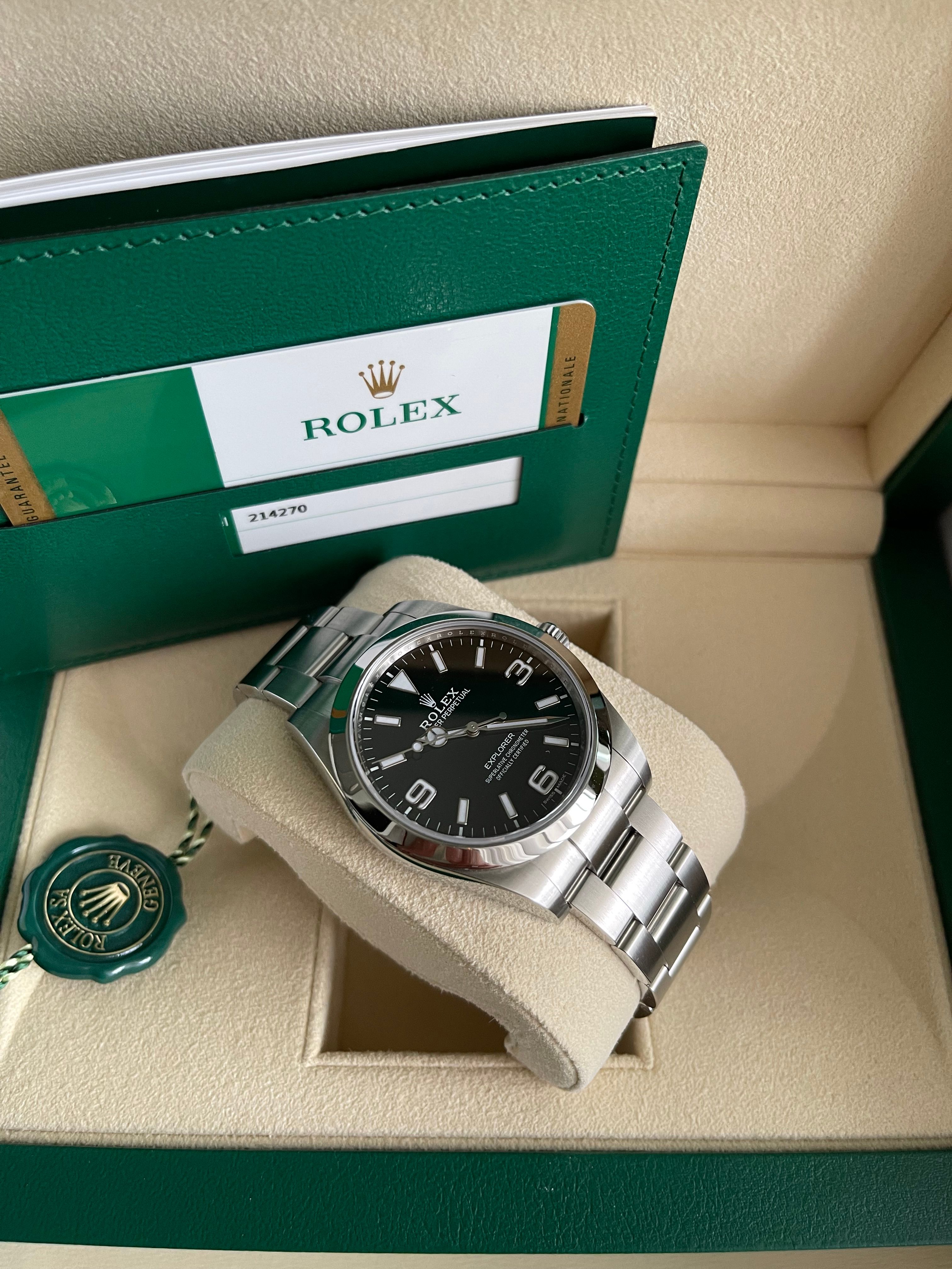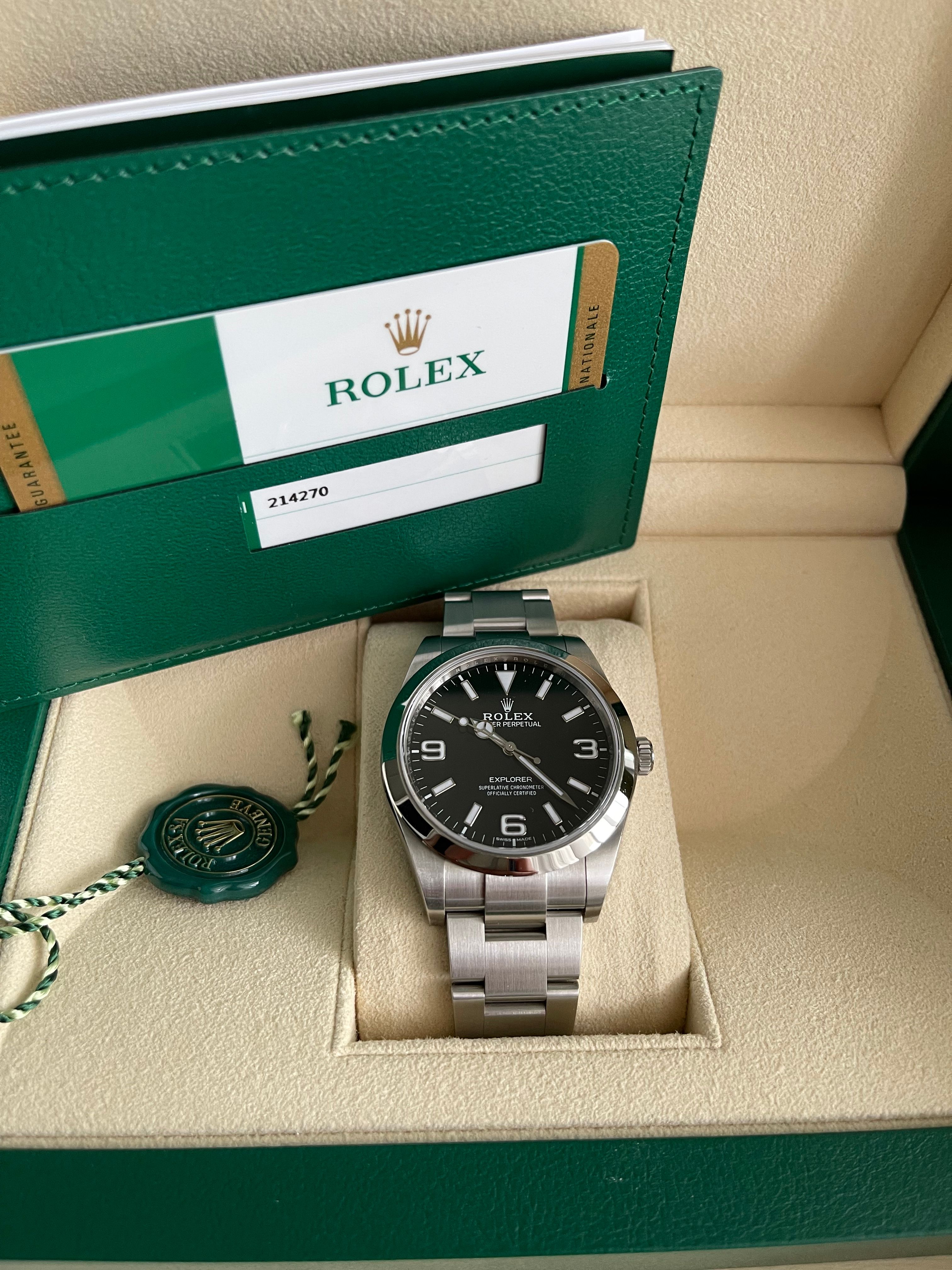 Rolex Explorer I 214270 Discontinued in a unworn condition. Beautiful black dial in a steel case with steel bezel.