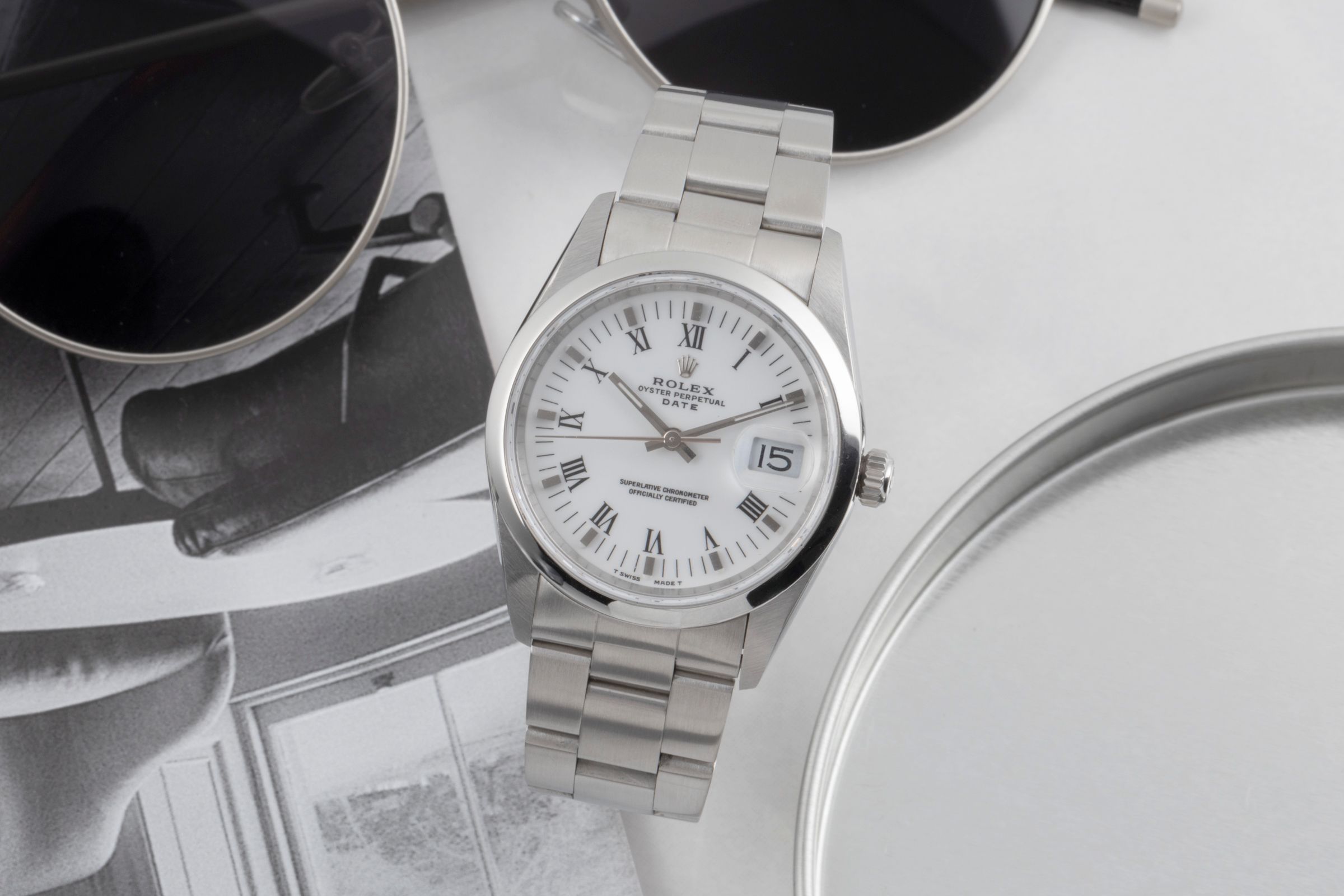 Alternative title: Rolex 15200 - Oyster Perpetual Date; Rolex Date 34 White Dial Oyster Stahl Automatik Herrenuhr Ref. 15200 T-Serie [2504650]