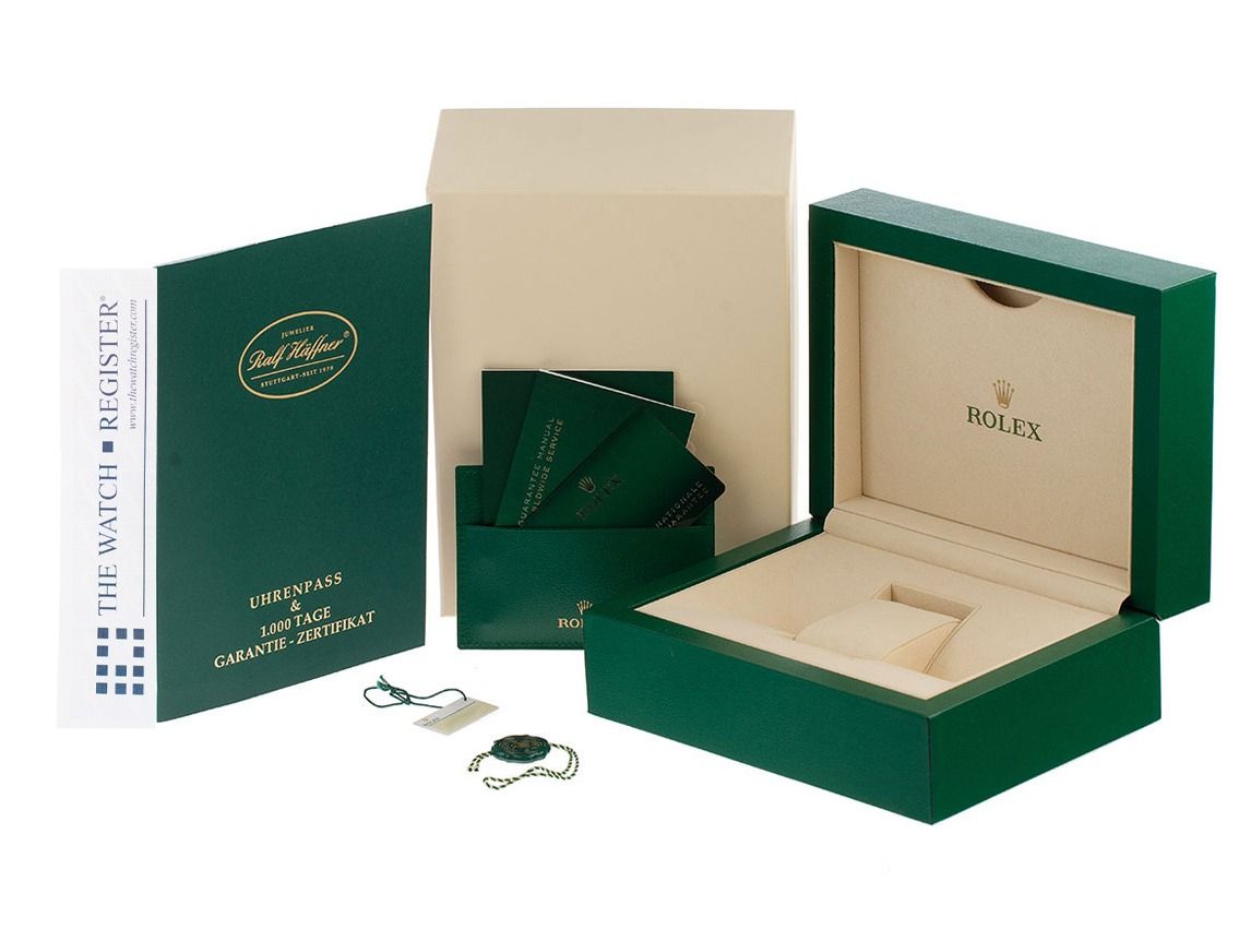 Inklusive certified pre owned Siegel / Uhrenpass mit einem Farbbild, der genauen Beschreibung sowie dem Wiederbeschaffungswert der Uhr über 9800,-€ und 1000 Tage Garantie ab Kaufdatum.