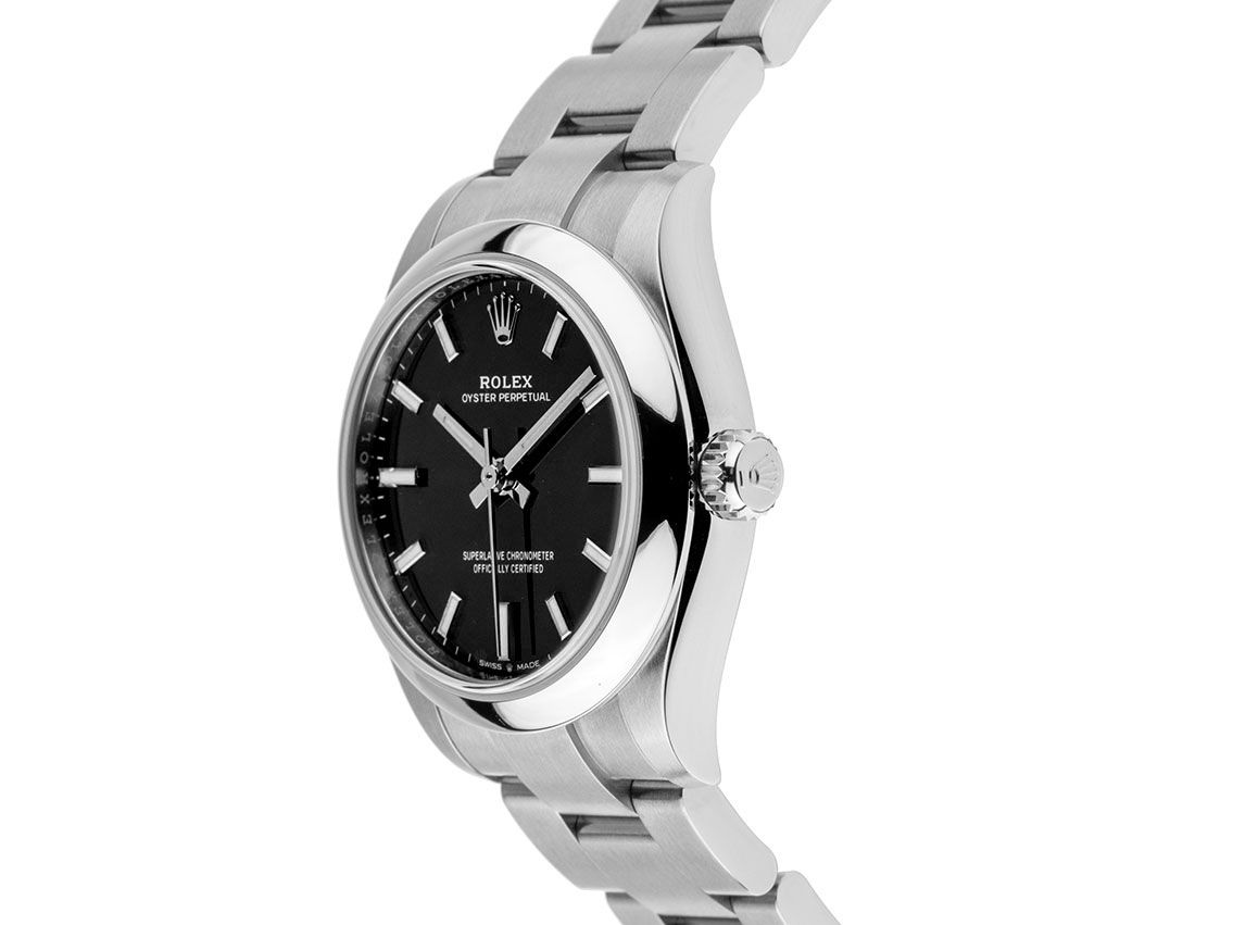 Rolex Oyster Perpetual Stahl Automatik Armband OysterGehäuse Edelstahl poliert, Gehäusedurchmesser ohne Krone 31mm, Gehäusehöhe 10,6mm. Lünette Edelstahl glatt und poliert. Armband Oyster Edelstahl poliert und satiniert, Rolex Faltschließe Edelstahl mit Hersteller-Logo. Zifferblatt schwarz mit aufgesetzten weißgoldenen Leuchtindexen und weißgoldenen Leuchtzeigern. Uhrwerk Automatik, Chronometer mit Zeugnis, Rolex Manufakturkaliber 2232 mit 31 Edelsteinen. Anzeige von Stunde, Minute und Sekunde über Zeiger aus der Mitte mit Sekundenstopp zur sekundengenauen Einstellung der Uhrzeit. Saphirglas kratzfest. Krone verschraubbar mit Hersteller-Logo. Boden Edelstahl verschraubt. Gewicht der Uhr inklusive Armband 91g, Länge des Armbandes inklusive Gehäuse 180mm. Referenznummer: 277200, Gehäusenummer: 14UK8XXX, ID: P1612114000925H-9800/5900, Artikelnummer: 10000082407. Mit Gangkontrolle und kompletter äußerlicher Aufarbeitung von September 2025. Original Rolex Box mit Umkarton und Garantie Papiere von Juni 2022, neue Rolex Garantie Karte ohne Ländercode sowie Beschreibung, Ledermäppchen, Tag, Rolex Chronometer-Siegel sowie Watchregister Auszug von September 2025, The Watch Register Zertifikat / ohne Eintrag (Internationale Datenbank für verlorene oder gestohlene Uhren), Full Set. Kapitalanlage mit Wertsteigerungspotential. Wie Neu. Lieferzeit sofort.