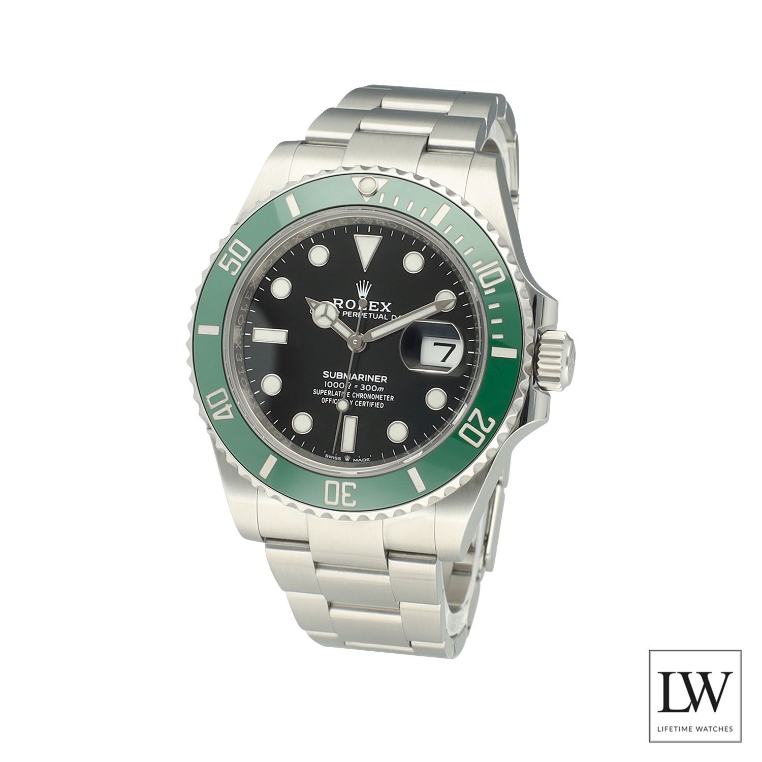 Rolex Submariner Date 126610LVThe Rolex Submariner Date with reference 126610LV from Q4/2020, also known as the “Starbucks”, comes with an original green leather Rolex travel pouch, watch, watch register verification document and Rolex database verification document. Including the hang tag, and 24 months warranty provided by us. This highly desirable model features a deep black dial paired with a striking green Cerachrom ceramic bezel insert, giving it a modern yet instantly recognizable look that has made it one of the most iconic Submariner configurations.