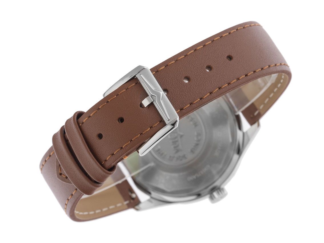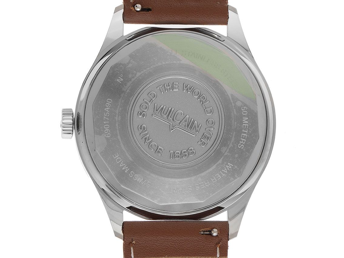 Caixa em aço inoxidável polido, diâmetro da caixa sem coroa 39mm, altura da caixa 12,7mm. Bezel em aço inoxidável liso e polido. Pulseira de couro marrom com costura decorativa, largura da alça 20mm, fecho de pino em aço inoxidável com logotipo do fabricante. Mostrador verde com números árabes em aço inoxidável aplicados e ponteiros em aço inoxidável. Movimento automático, calibre Vulcain Landeron L24, reserva de marcha de aproximadamente 40 horas. Exibição de horas e minutos através de ponteiros centrais, pequeno segundo com parada de segundos para ajuste preciso da hora às 6 horas. Vidro de safira resistente a riscos e curvado. Coroa estriada com logotipo do fabricante. Fundo em aço inoxidável rosqueado e gravado. Peso do relógio incluindo a pulseira 61g. Número de referência: 690175A90.BAC207, ID: ST593416541025H-1408, número do artigo: 10000082522. Caixa original Vulcain e documentos de garantia de 2025, Full Set. Novo. Prazo de entrega imediato.