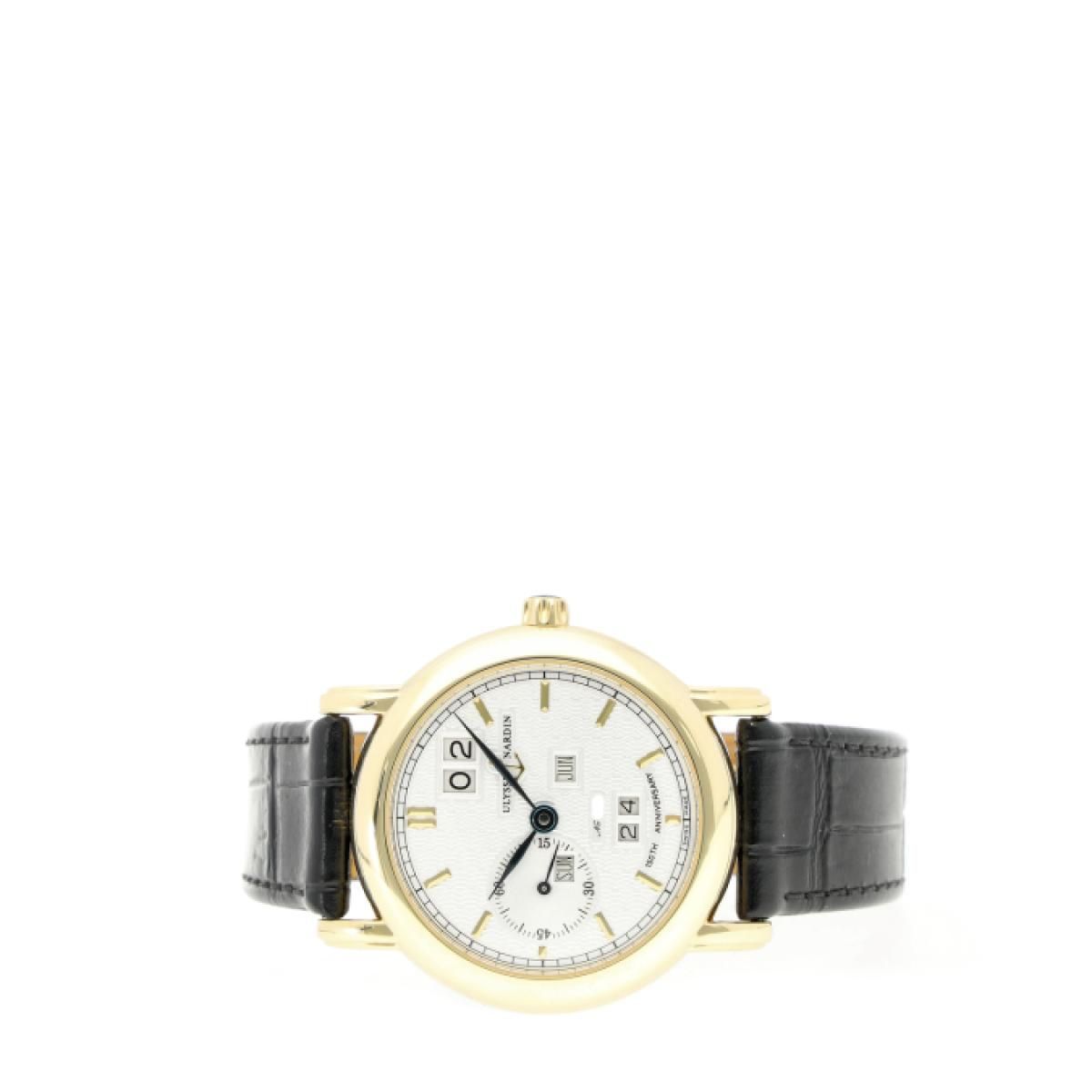 Ulysse Nardin Calendário Perpétuo de 2002 com caixa de 38 mm em ouro amarelo e fecho dobrável. O relógio masculino está em muito bom estado. Outras características do produto são: